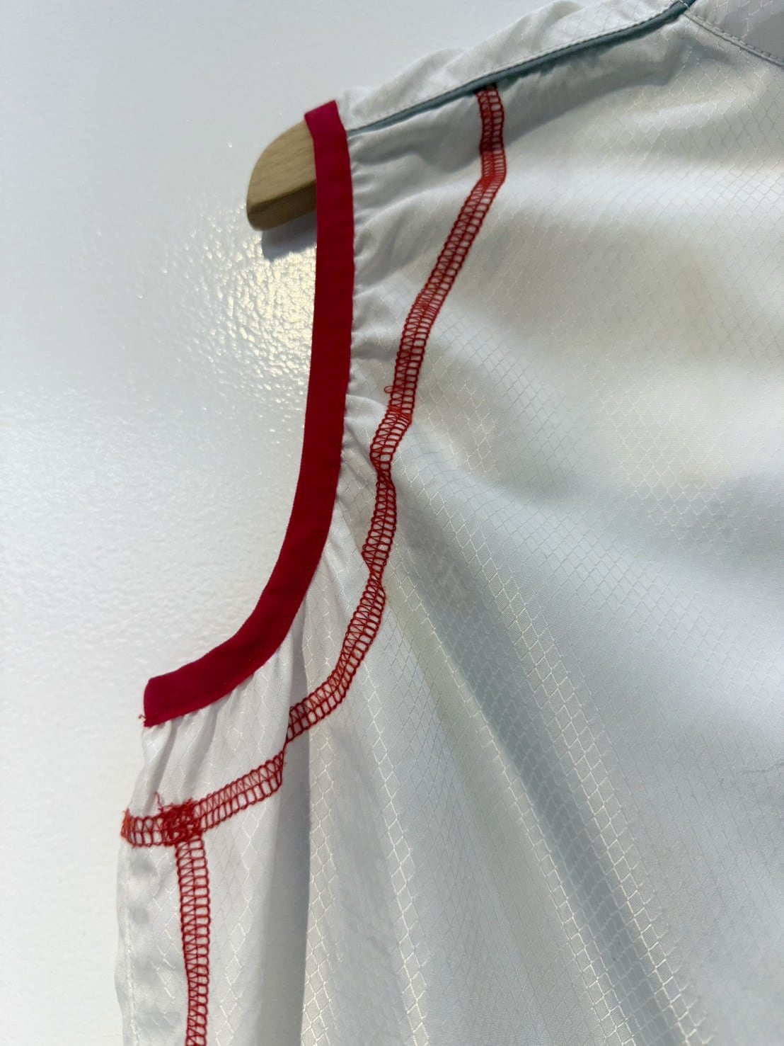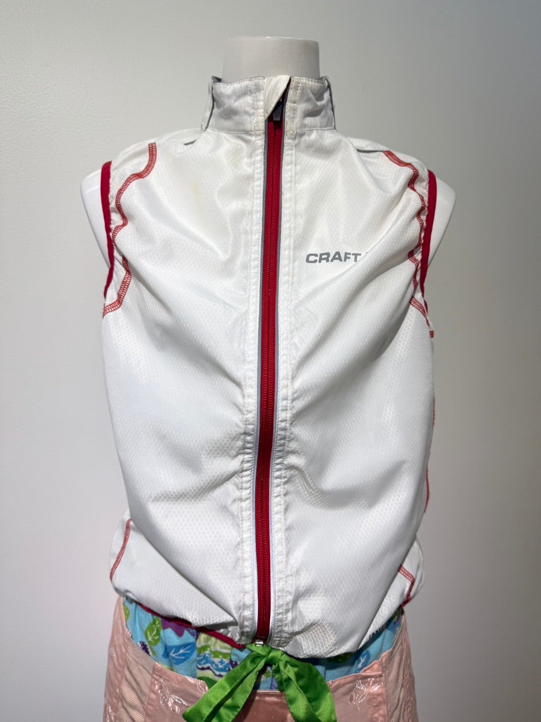素材: 100%Polyester サイズ: 肩幅33cm 身幅40cm 身丈62.5cm (タートル丈4cm) ダメージ: 写真13〜16枚目のような汚れがあります。