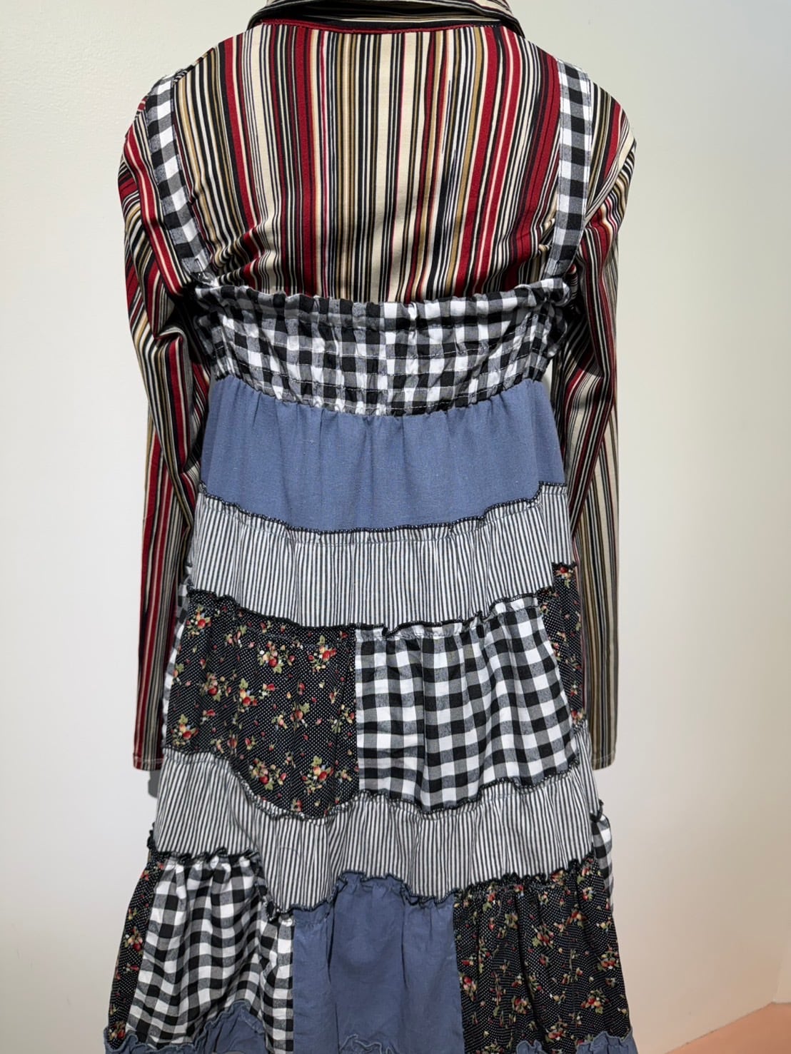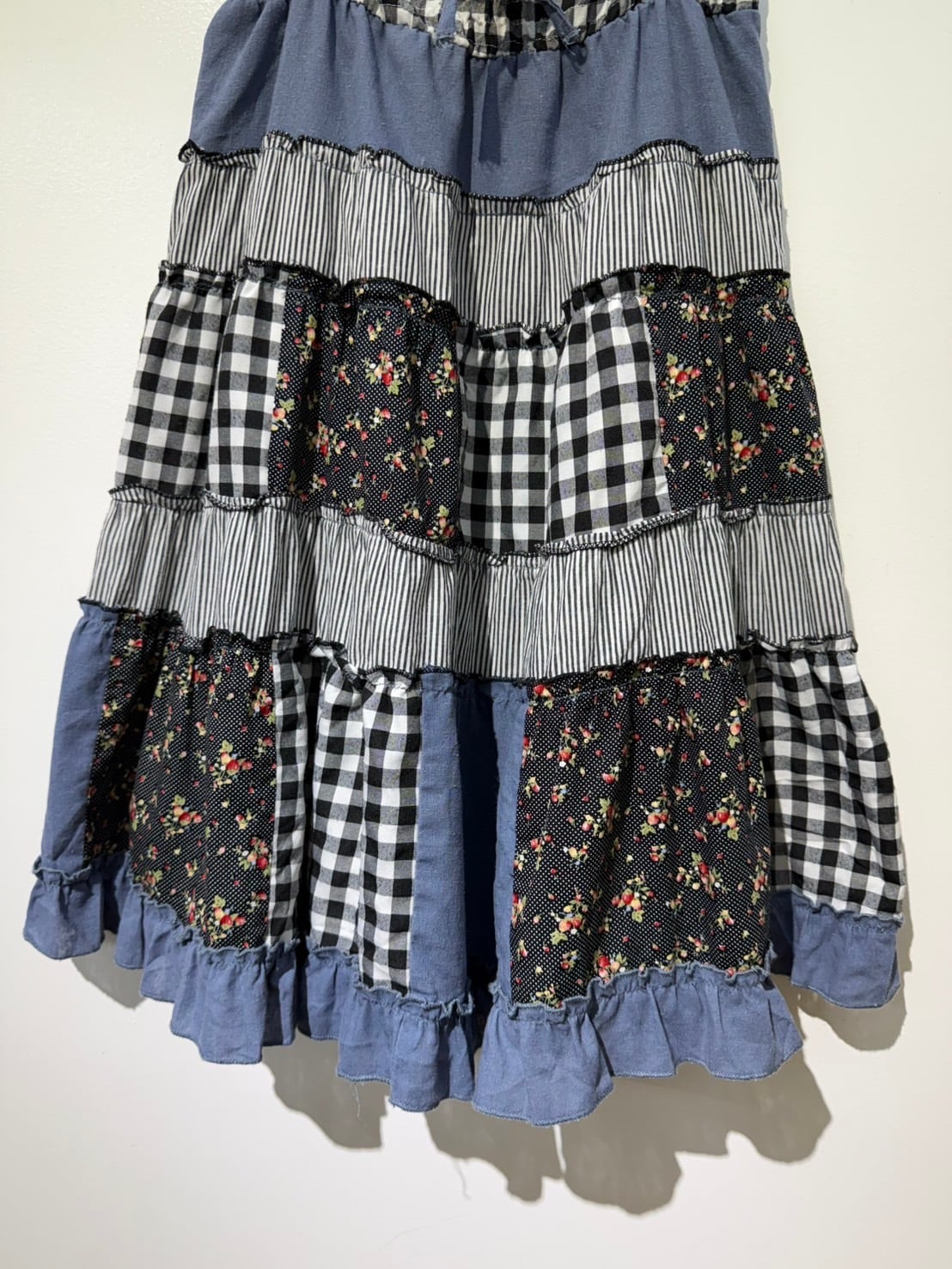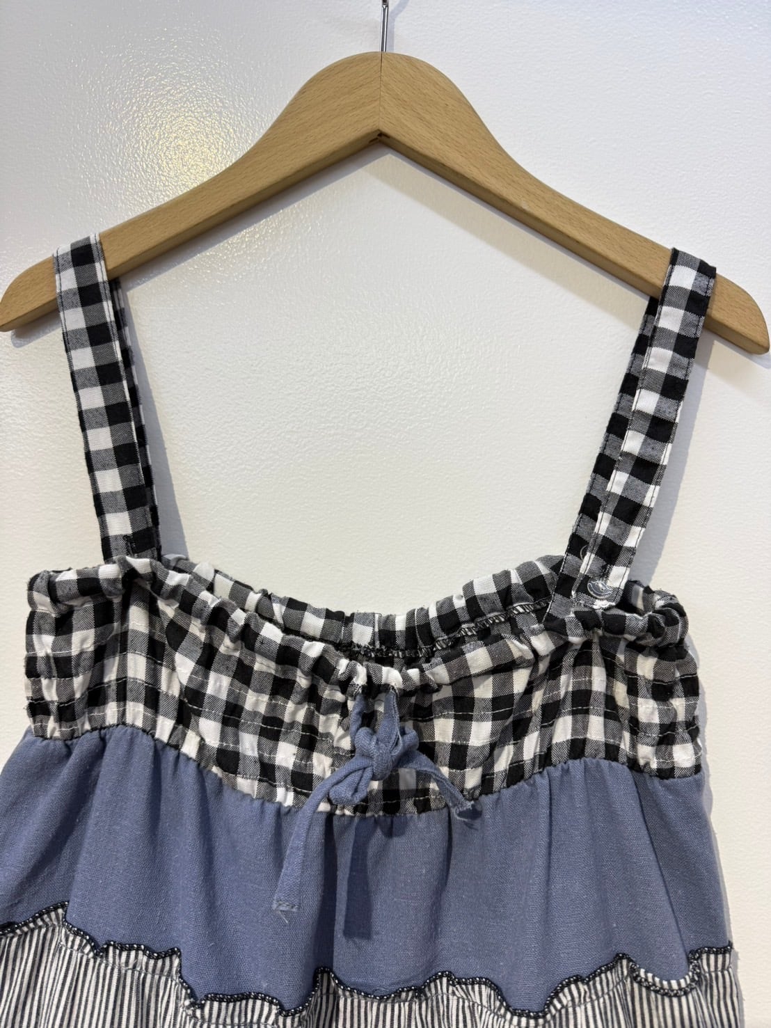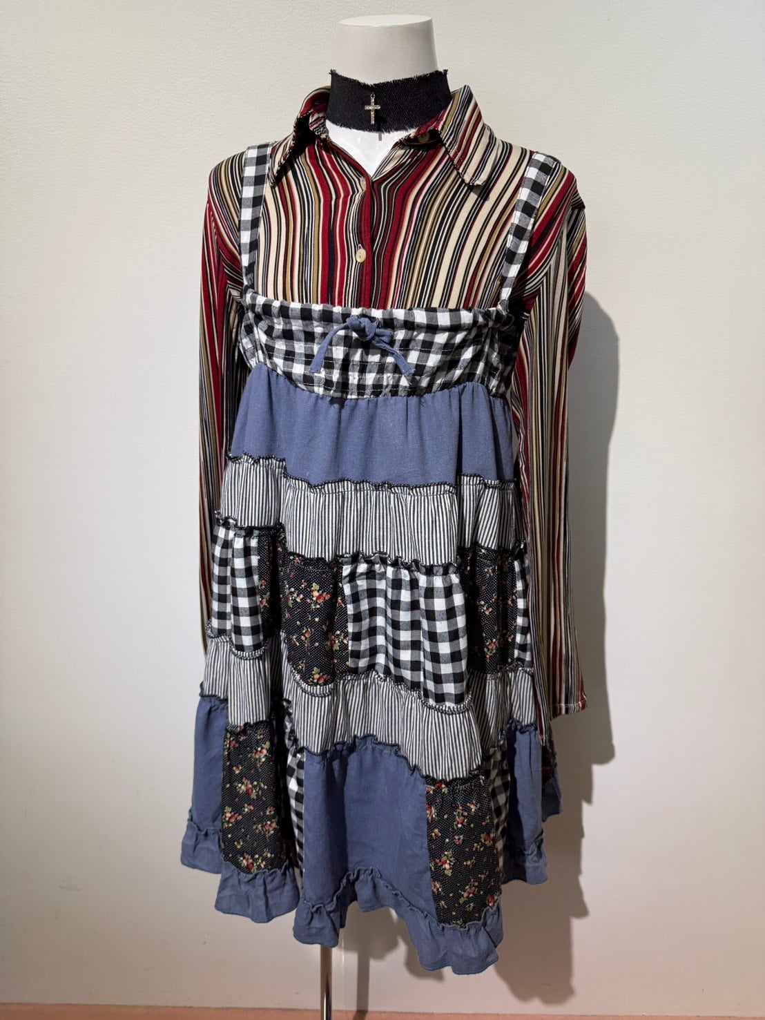 素材: 50%Cotton 50%Polyester ウエスト周りの紐は肩紐としても使用でき、ドレスとして着用できるデザインになっています。 サイズ: ウエスト幅32〜44cm(ゴムで伸縮) ヒップ幅47.5cm 丈72cm 紐16cm