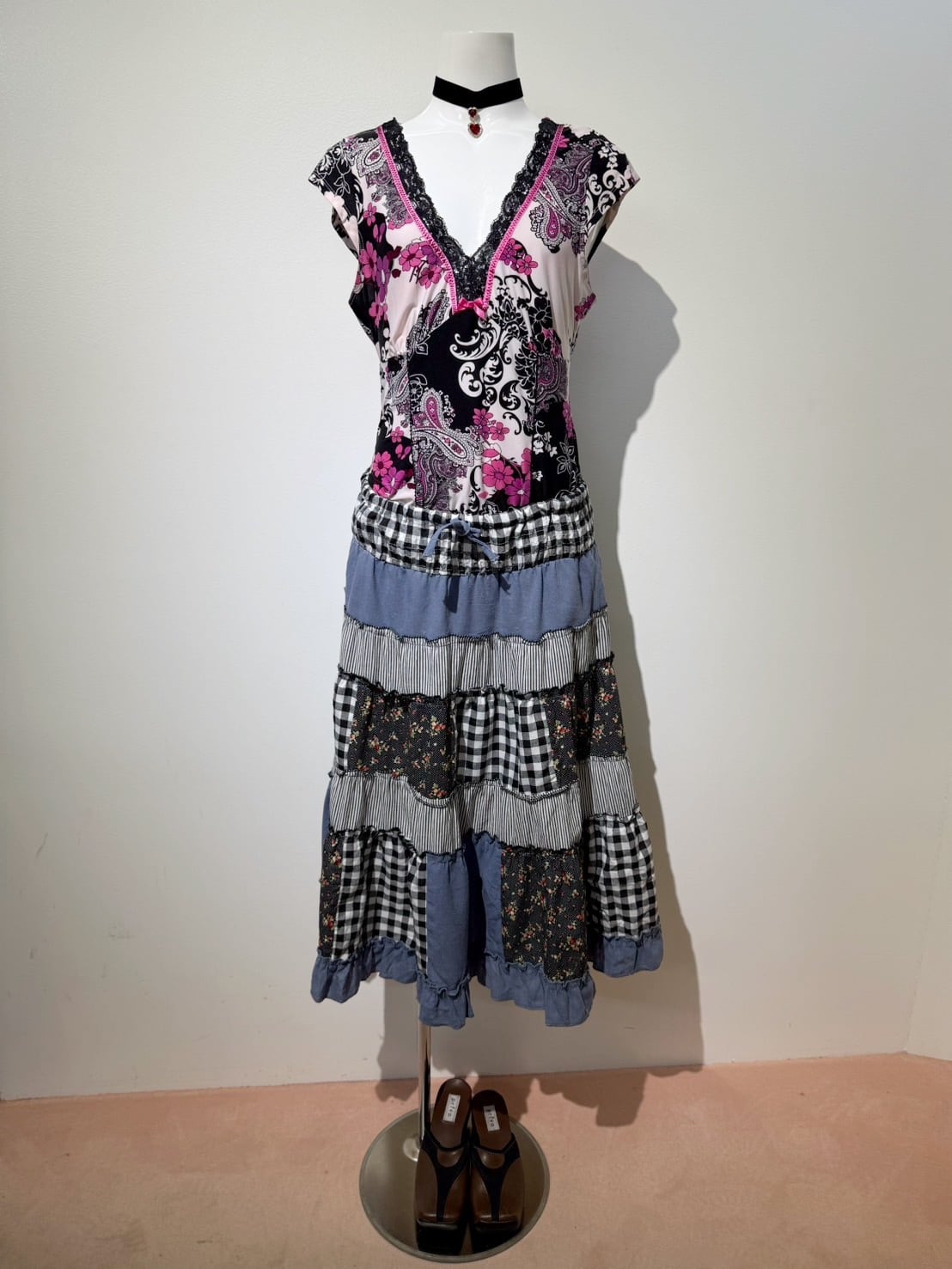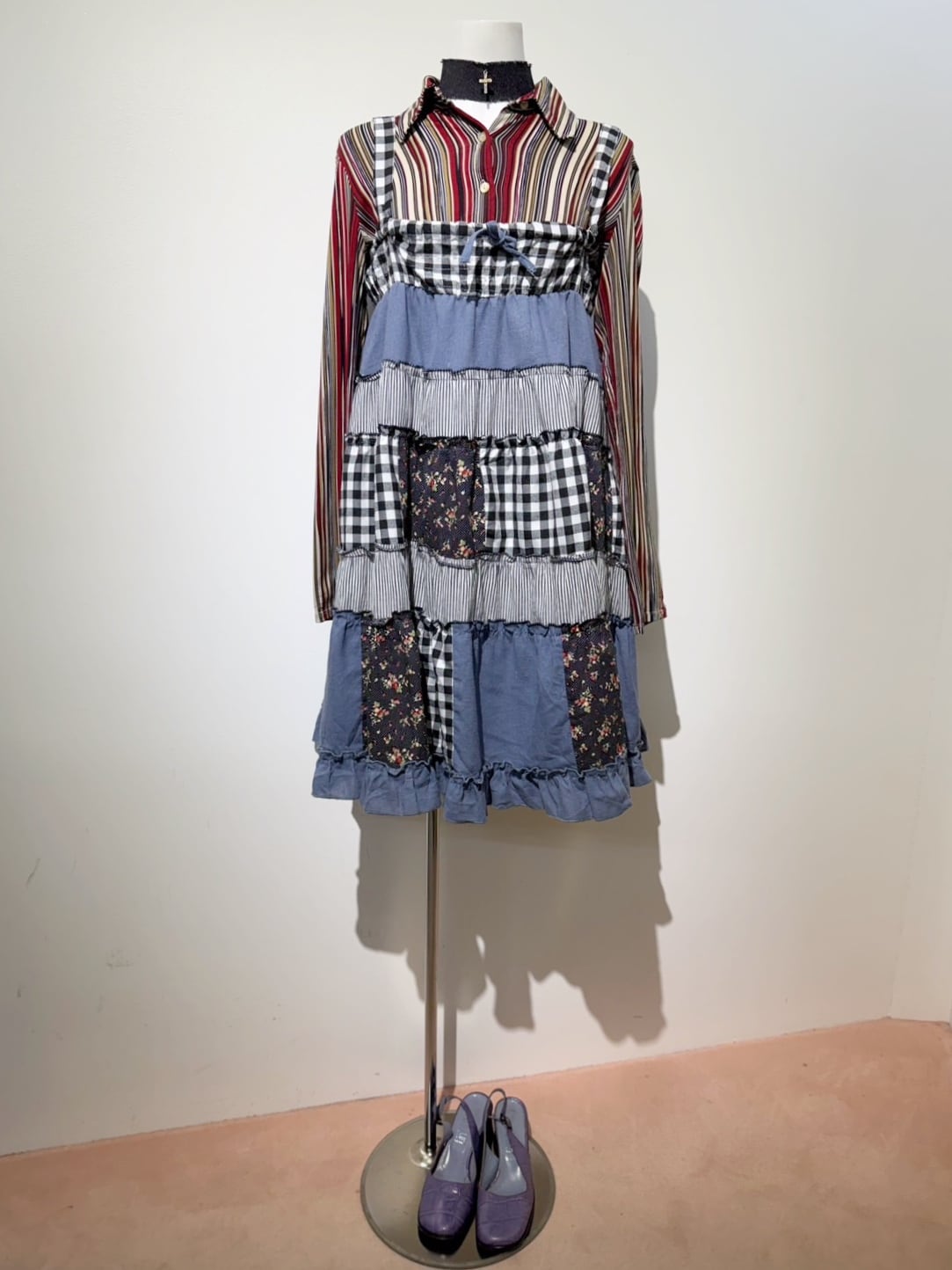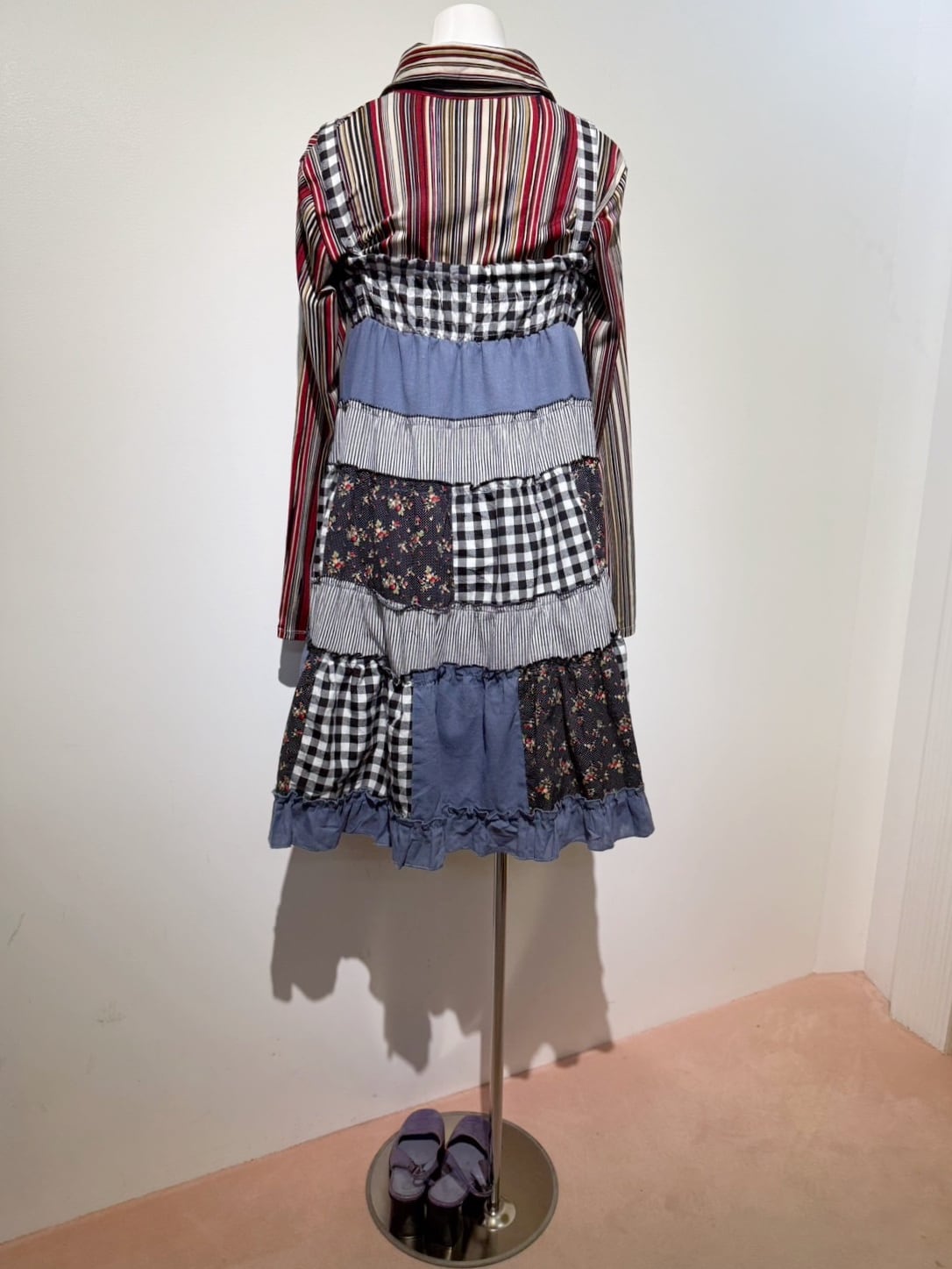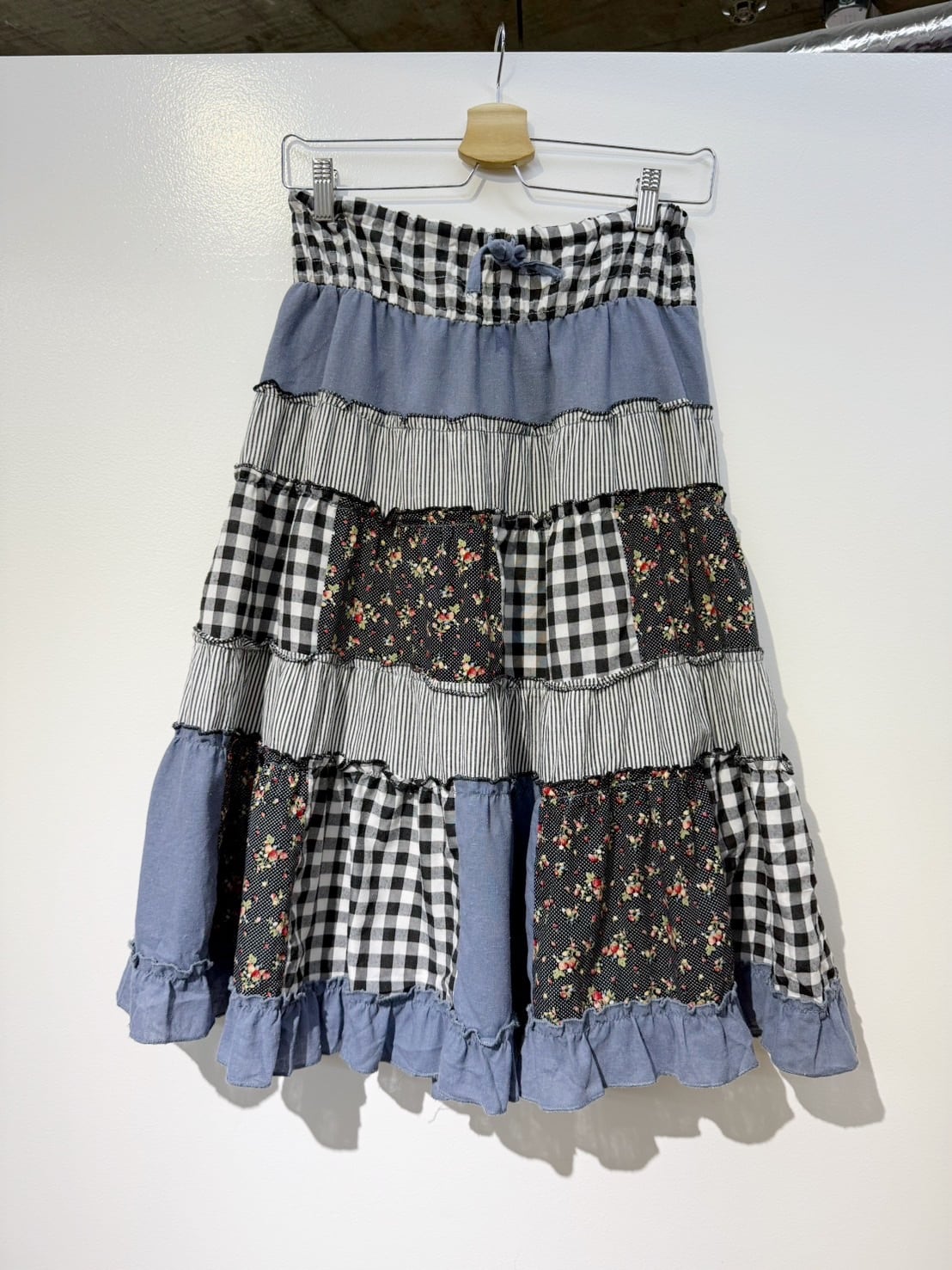 素材: 50%Cotton 50%Polyester ウエスト周りの紐は肩紐としても使用でき、ドレスとして着用できるデザインになっています。 サイズ: ウエスト幅32〜44cm(ゴムで伸縮) ヒップ幅47.5cm 丈72cm 紐16cm