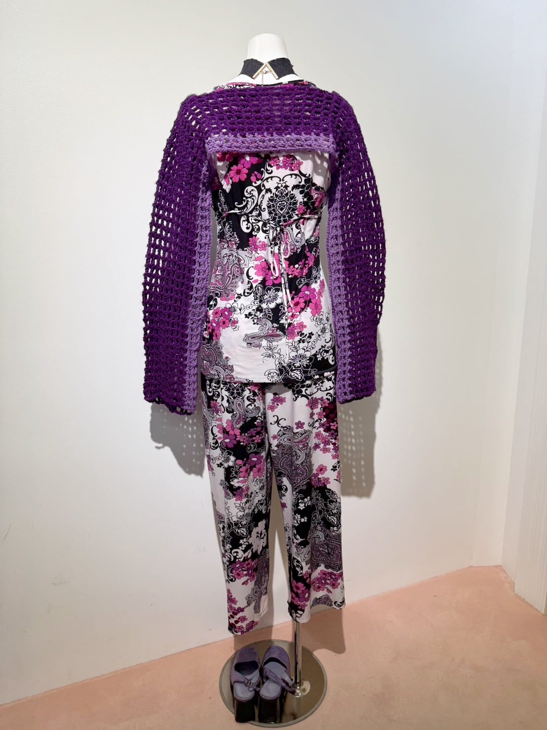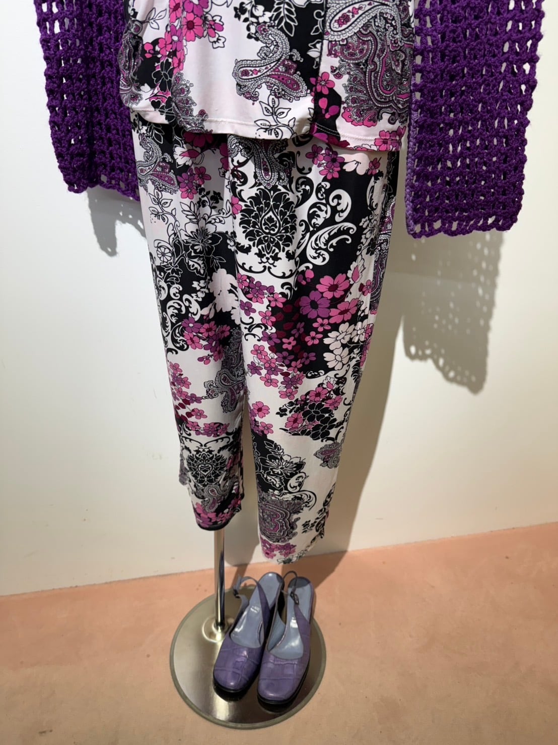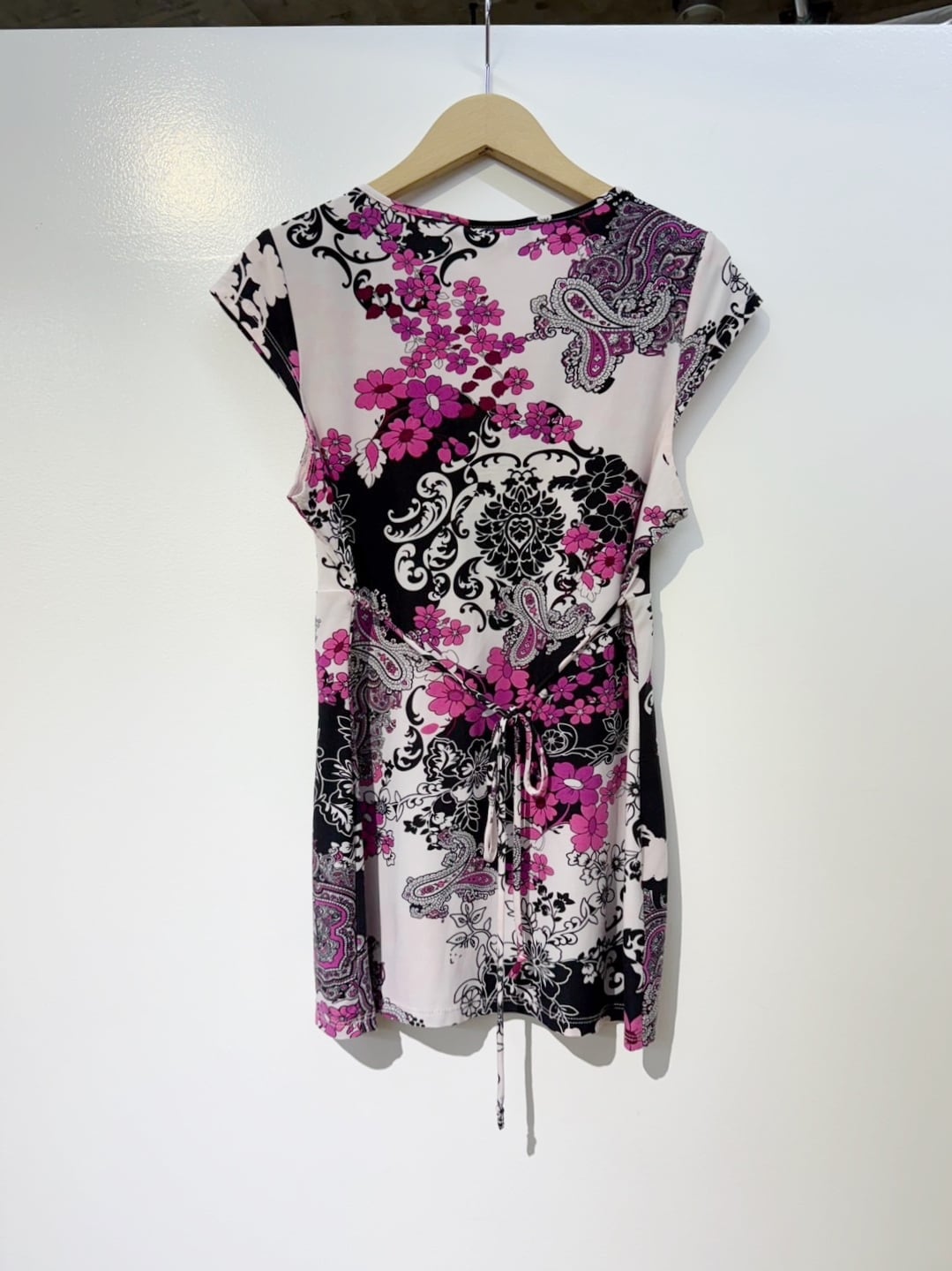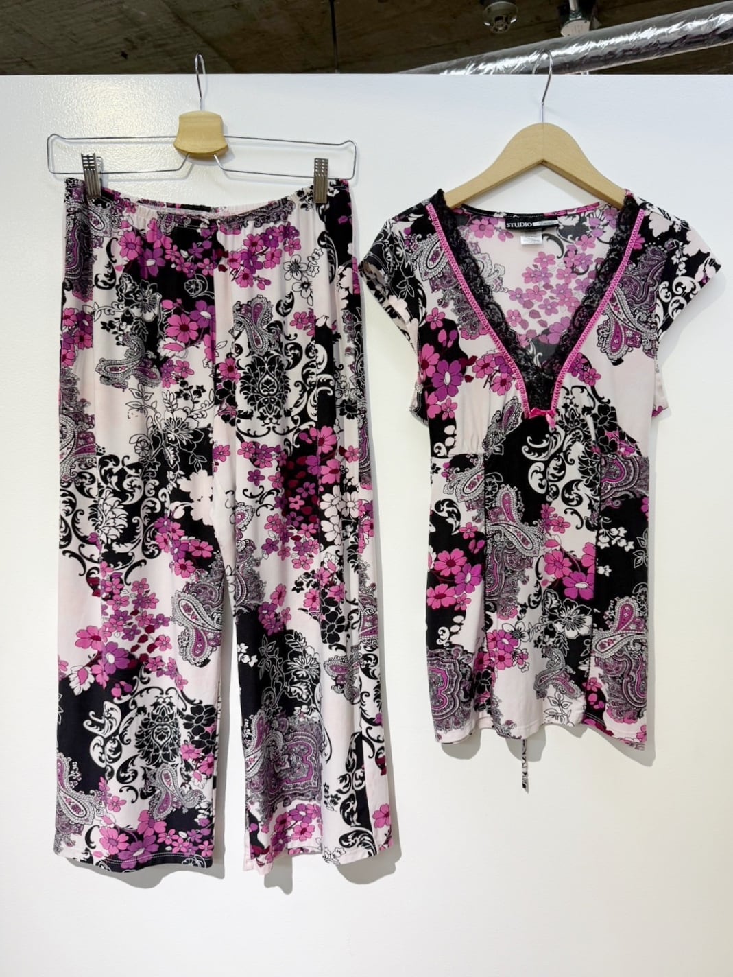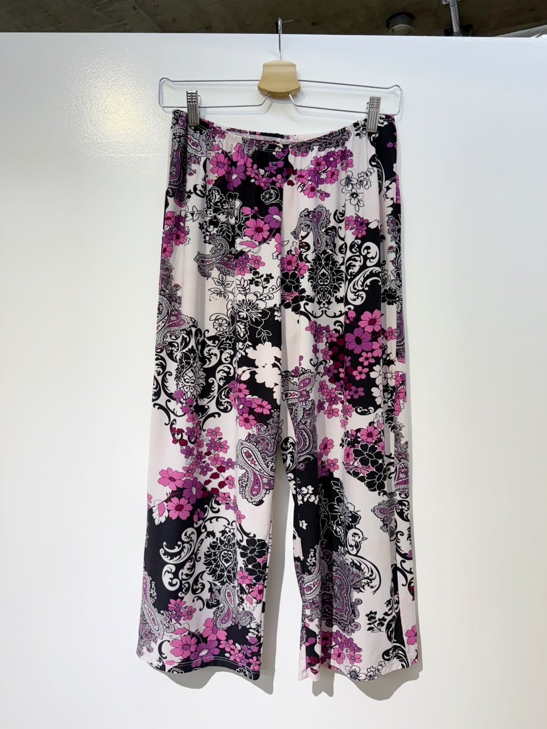 素材: 90%Polyester 10%Spandex サイズ: S(表記) tops 肩幅35cm 袖丈7cm 身幅44〜53cm(伸びる素材) 身丈62cm Pants ウエスト35〜48cm(ゴムで伸縮) 股上26cm 股下55cm わたり幅30cm 裾幅24.5cm