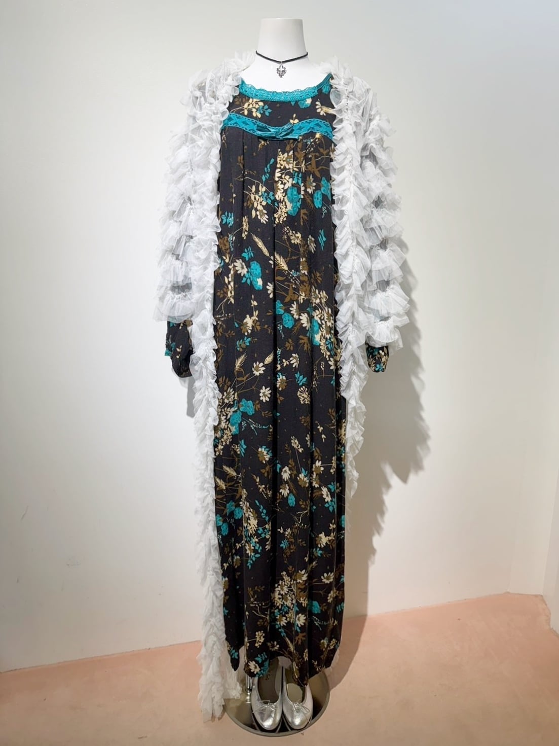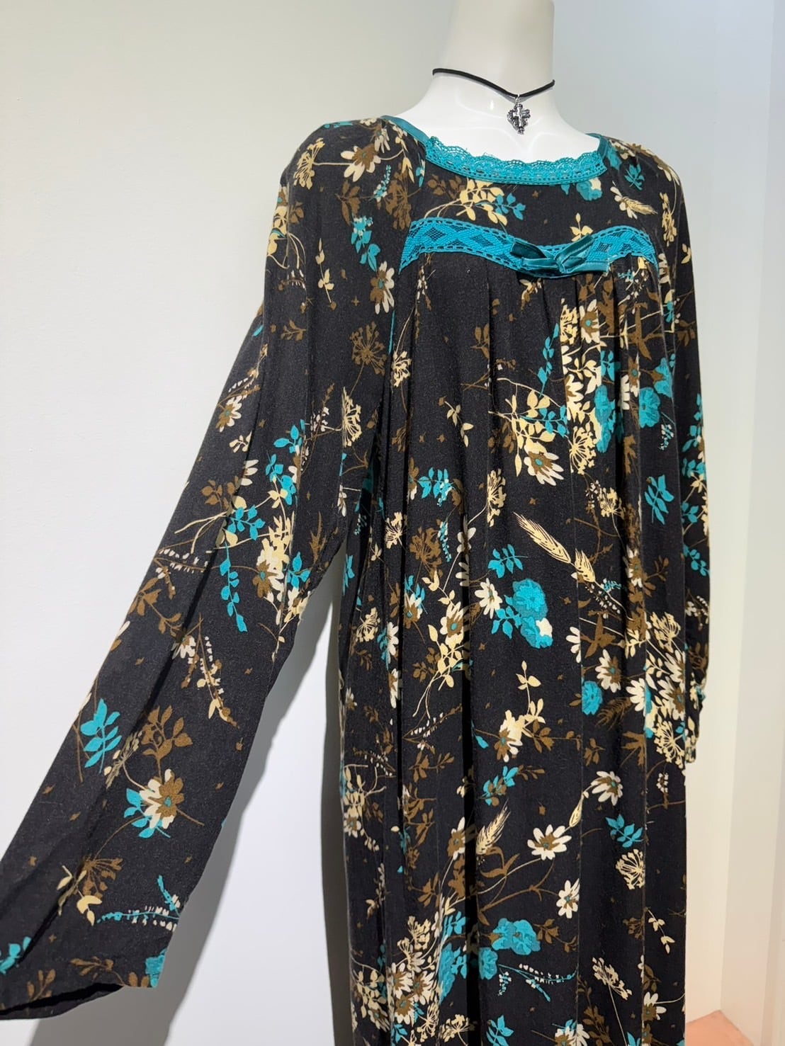 素材: Polyester(表記なし) サイズ: M(表記) 裄丈71cm 身幅47cm 身丈1m34cm ダメージ: 写真19枚目のような伝線があります。