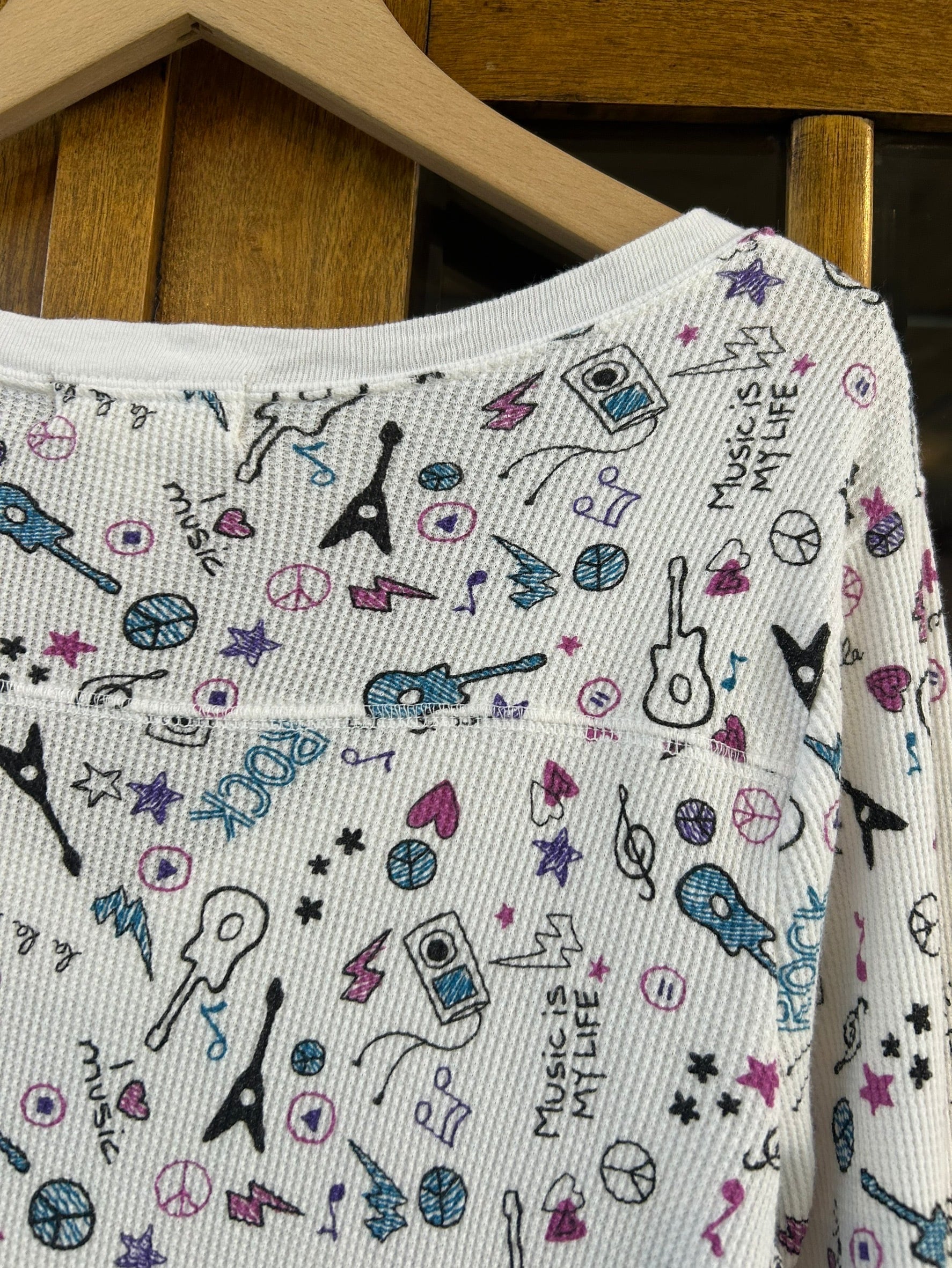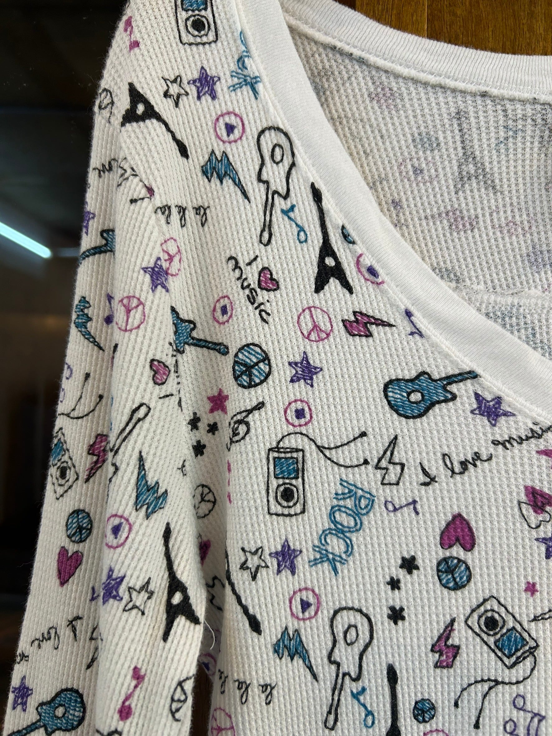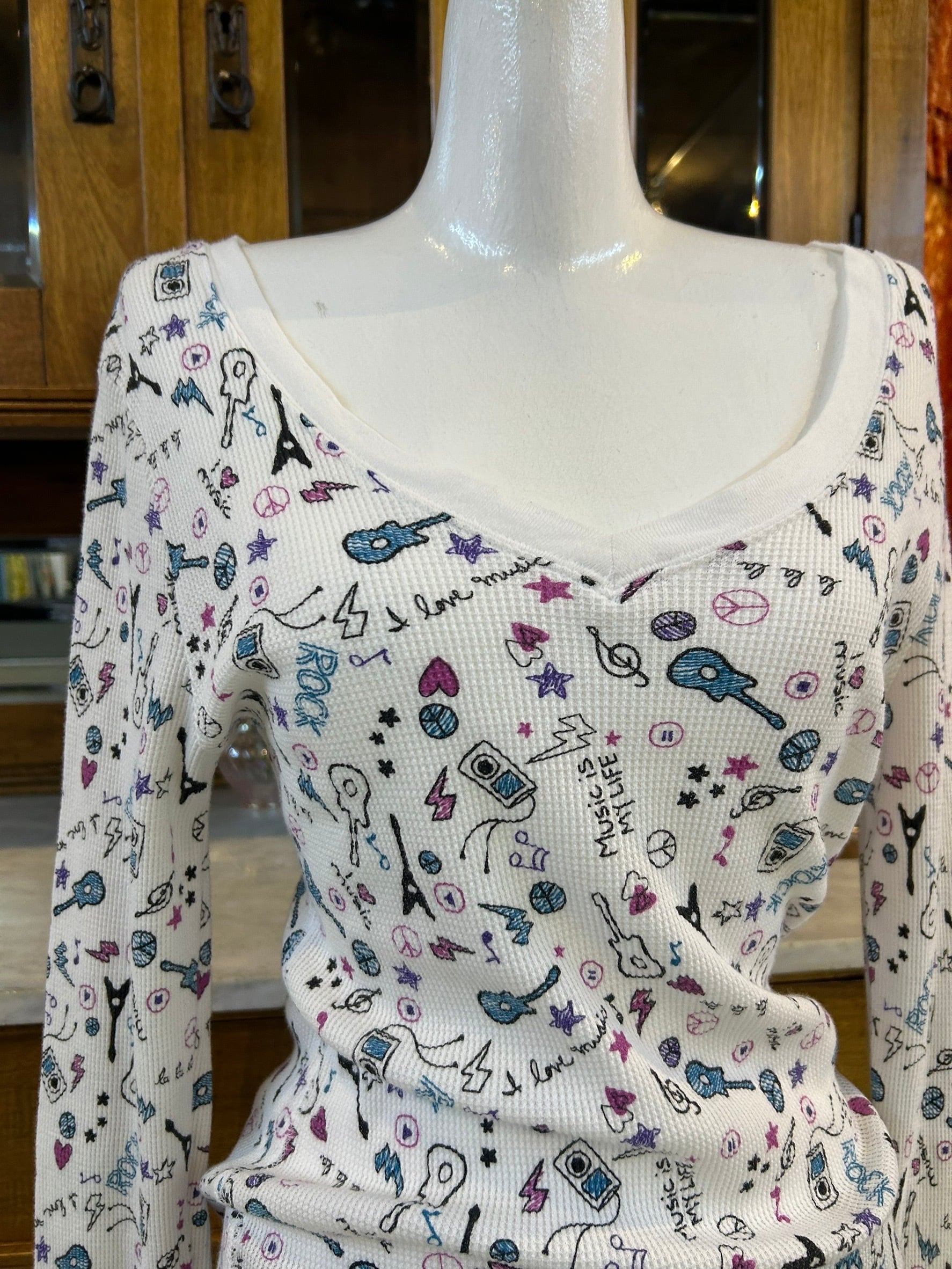素材: 96%Cotton 4%Spandex サイズ: L(girl) 着丈63cm 肩幅45cm 身幅41cm 袖丈68cm ダメージ: 写真19.20枚目のように細かな毛羽立ちがあります