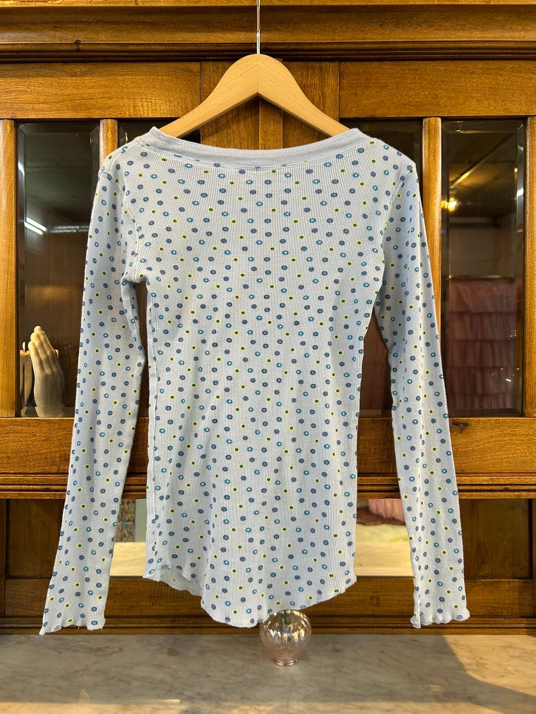 素材: 100%Cotton サイズ: M(表記) 着丈59cm 肩幅40cm 身幅34cm 袖丈57cm ダメージ: 写真14〜16枚目の汚れがあります