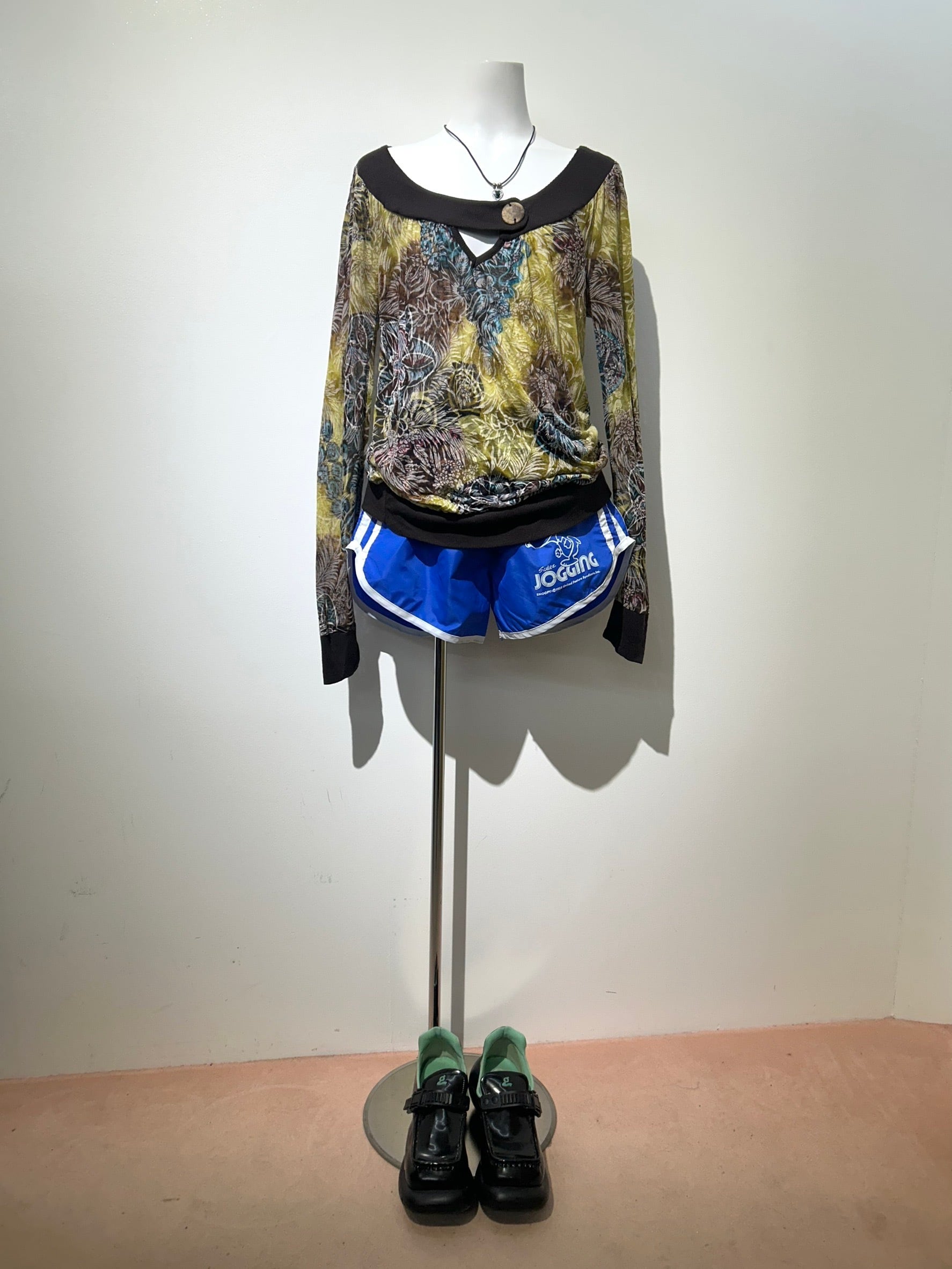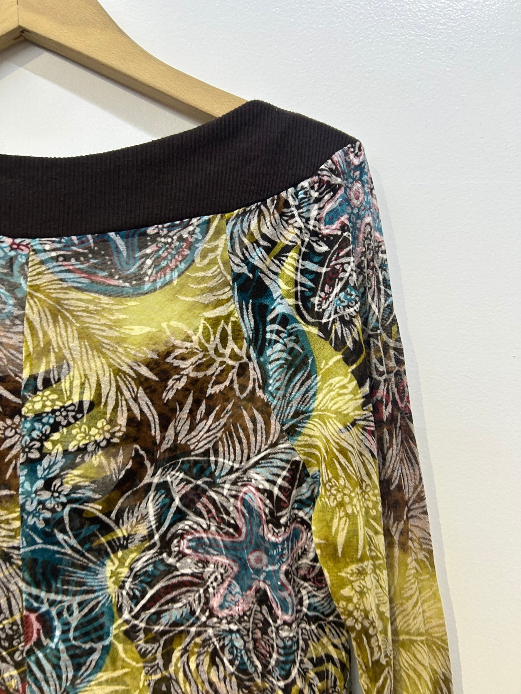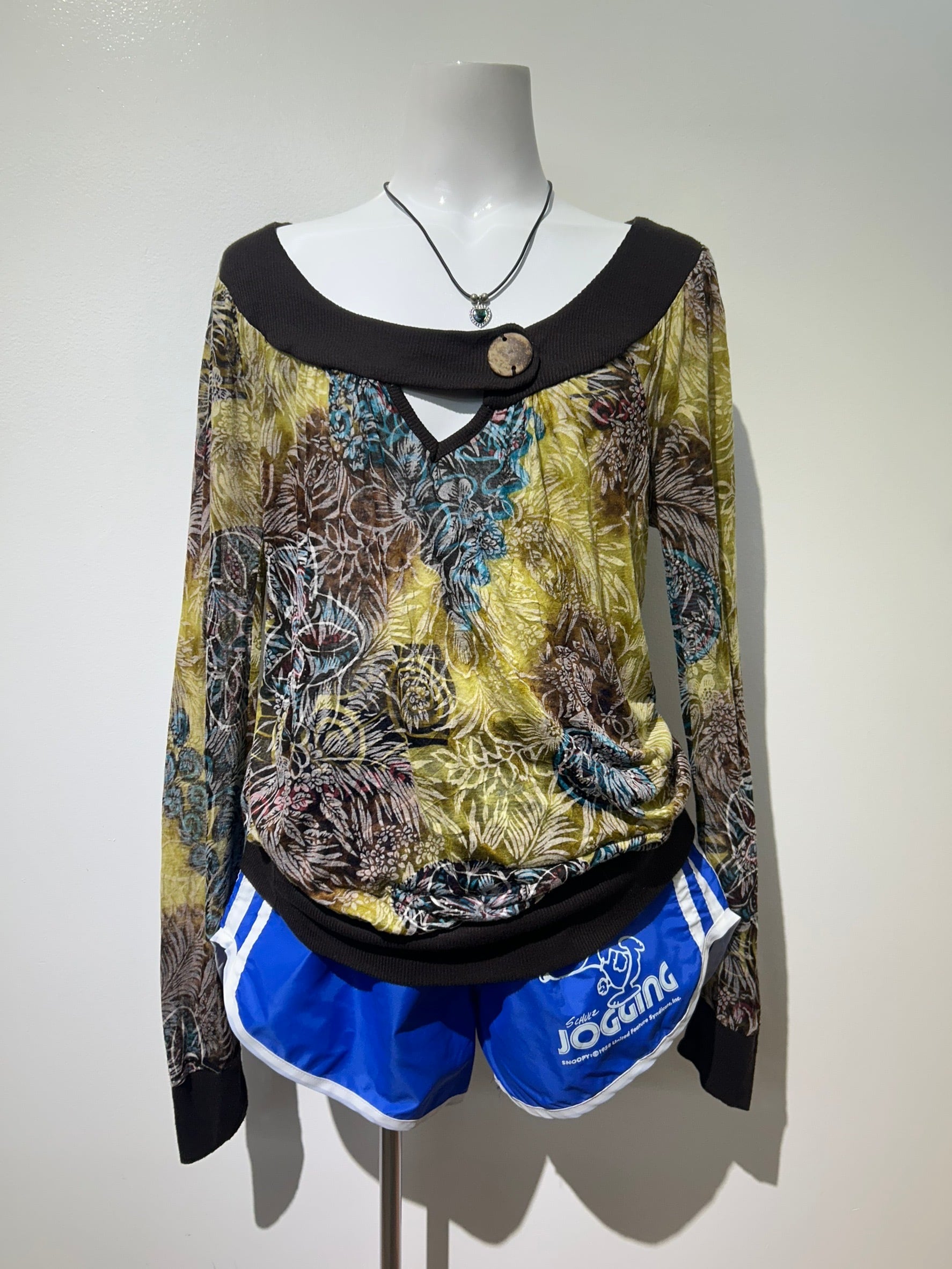素材: 65%Polyester 35%Rayon サイズ: M(表記) 着丈49.5cm 身幅48cm 裄丈92cm ダメージ: 写真16.17枚目の汚れがあります made in USA