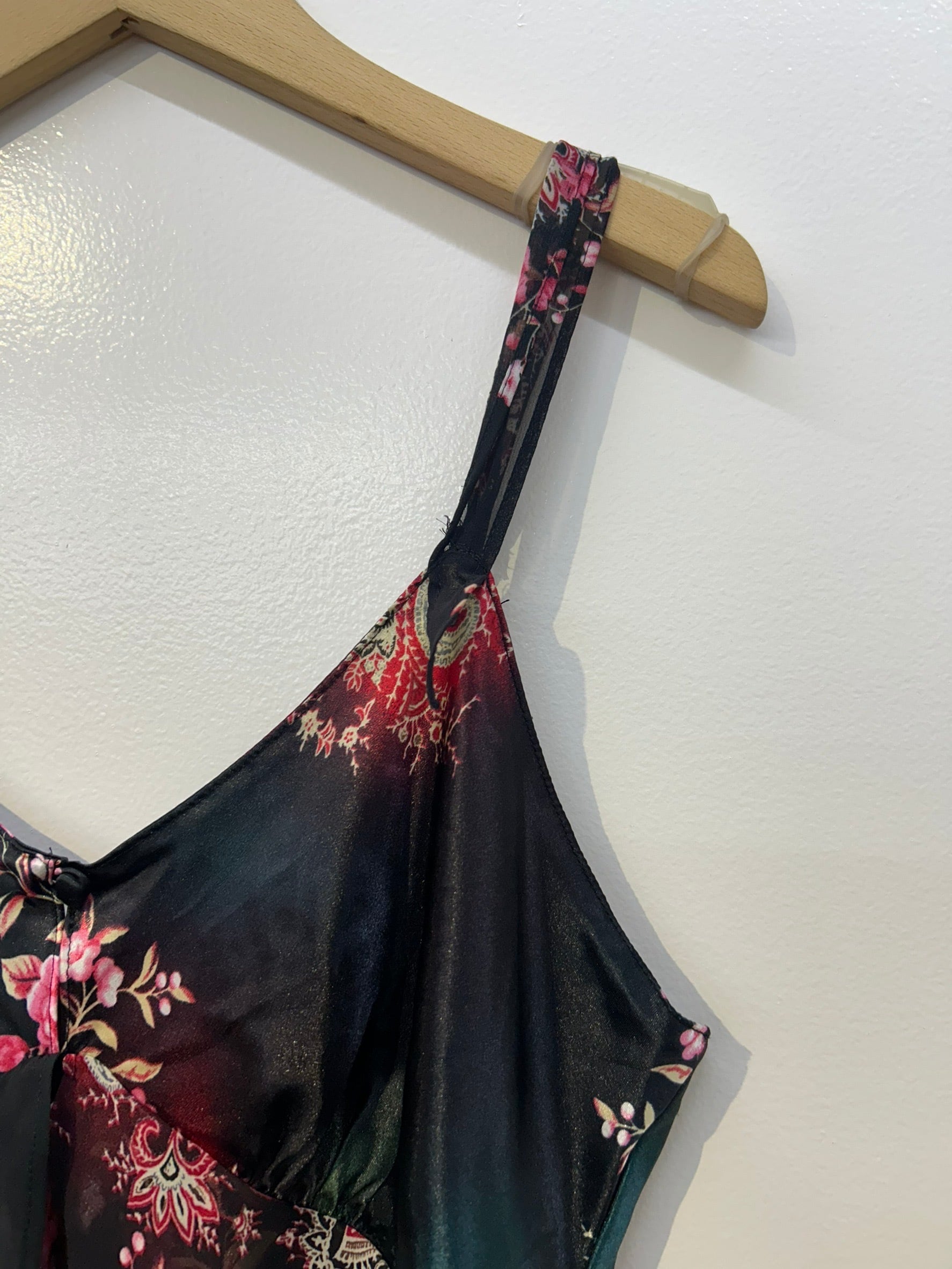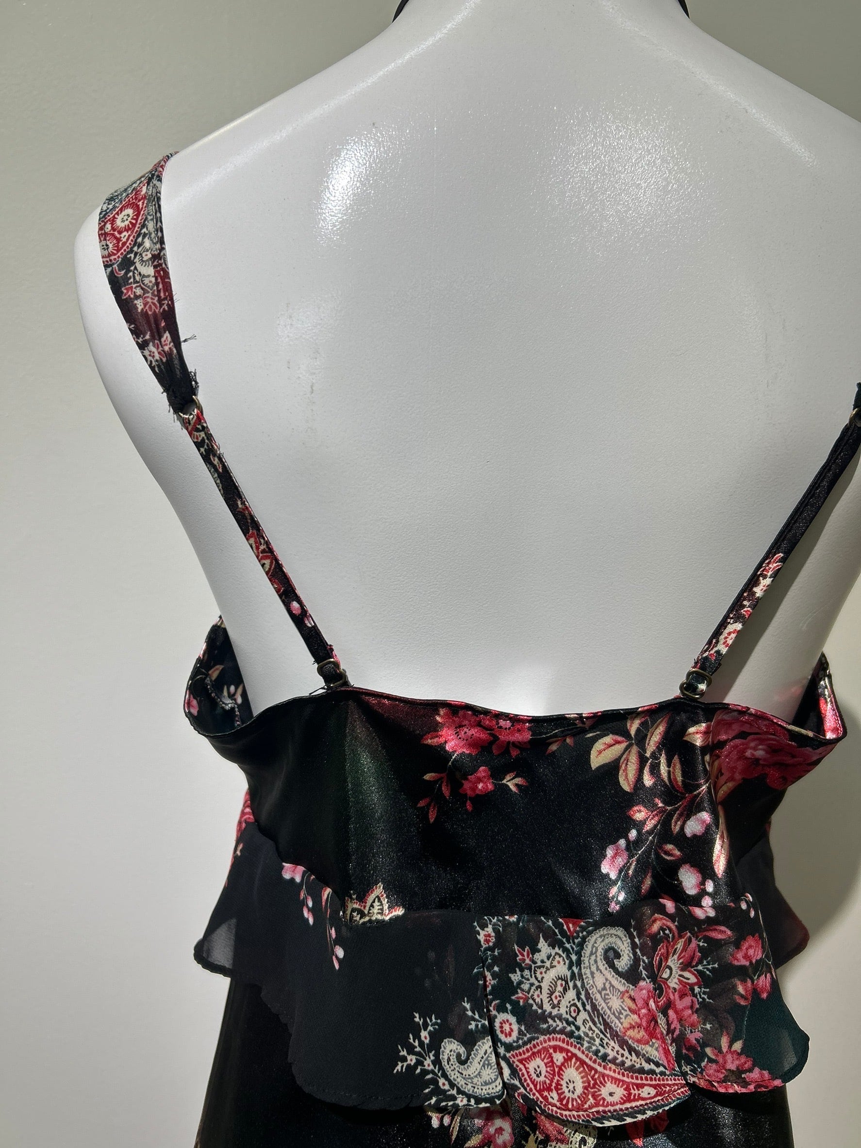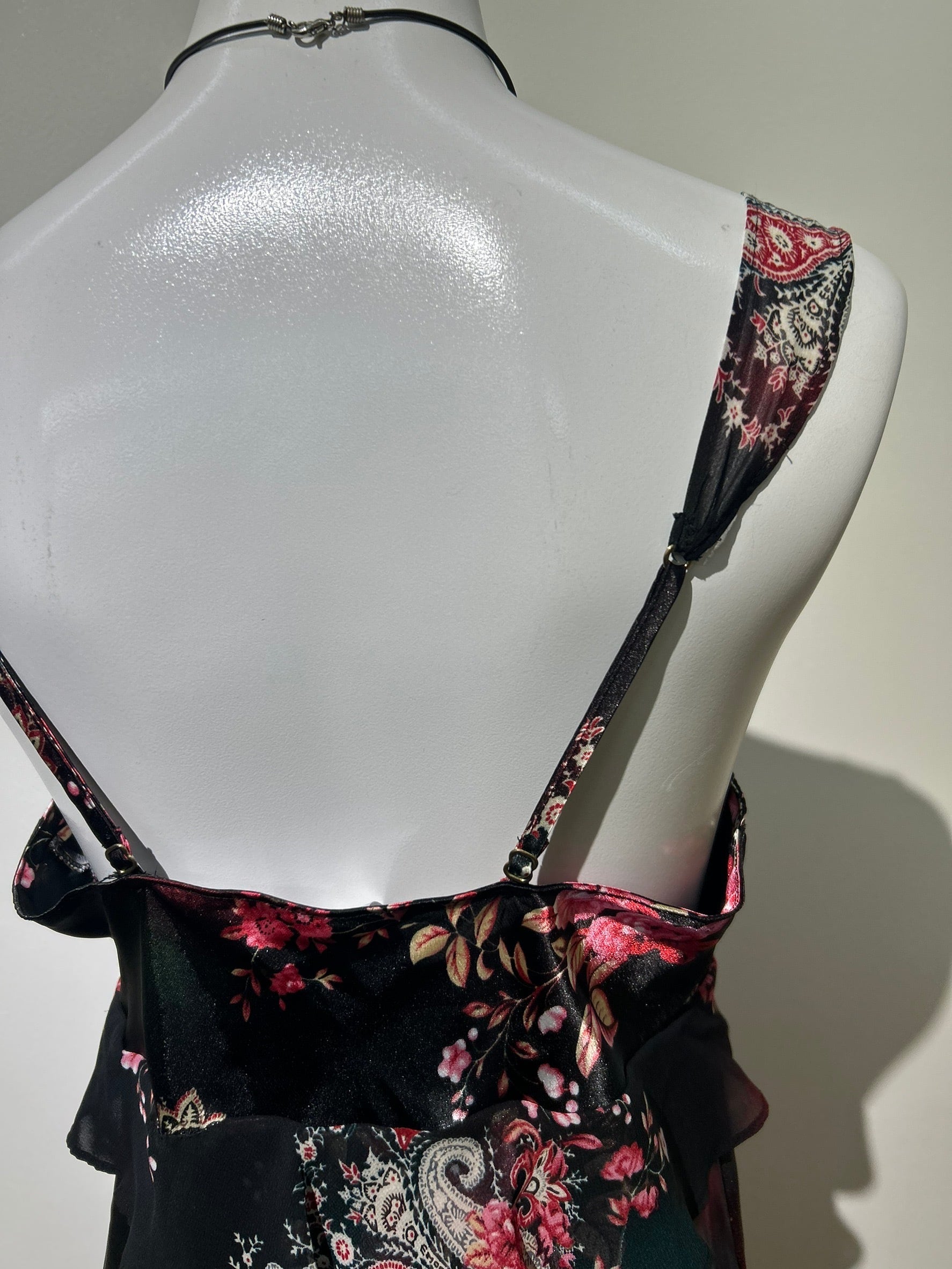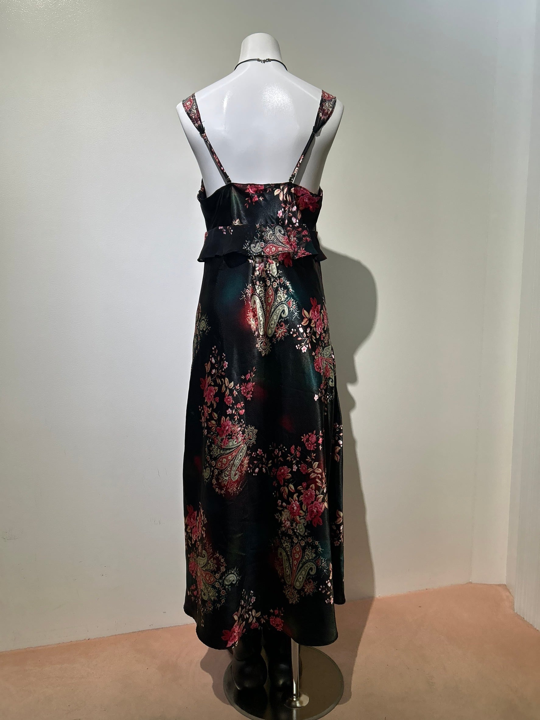 素材: 100%Polyester サイズ: S(表記) 前身頃109cm 後ろ身頃95cm 身幅39cm 肩紐38〜45cm ダメージ: 写真20枚目のお直しがあります