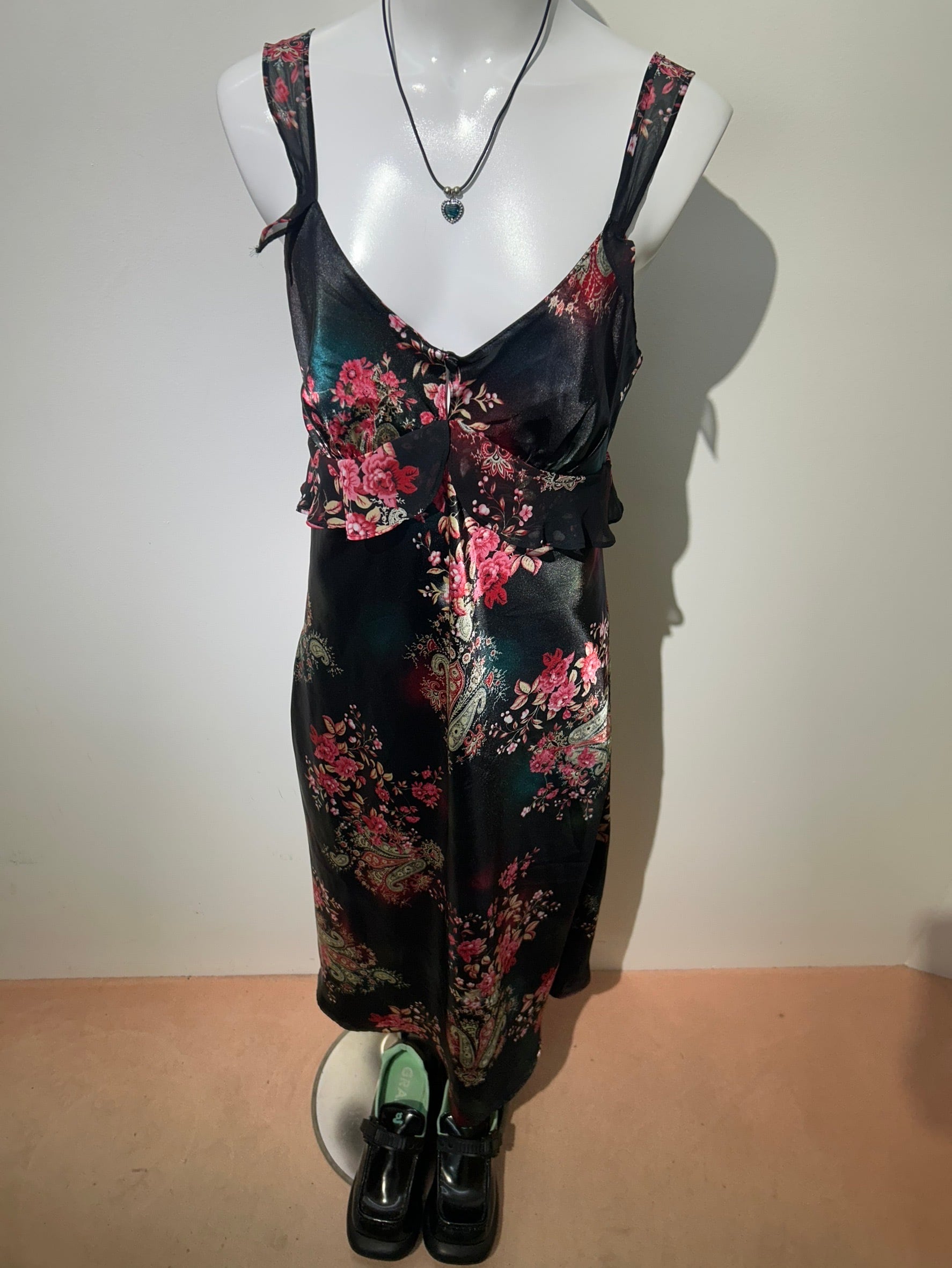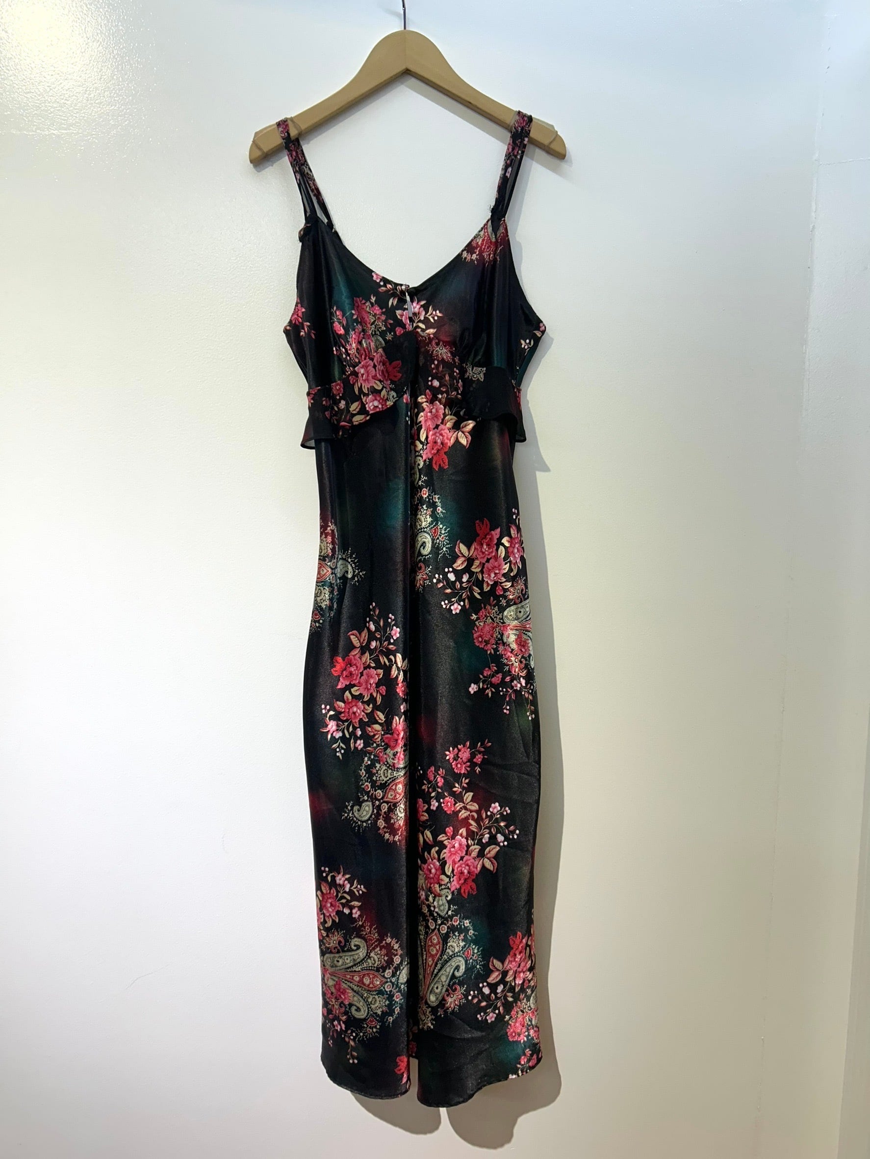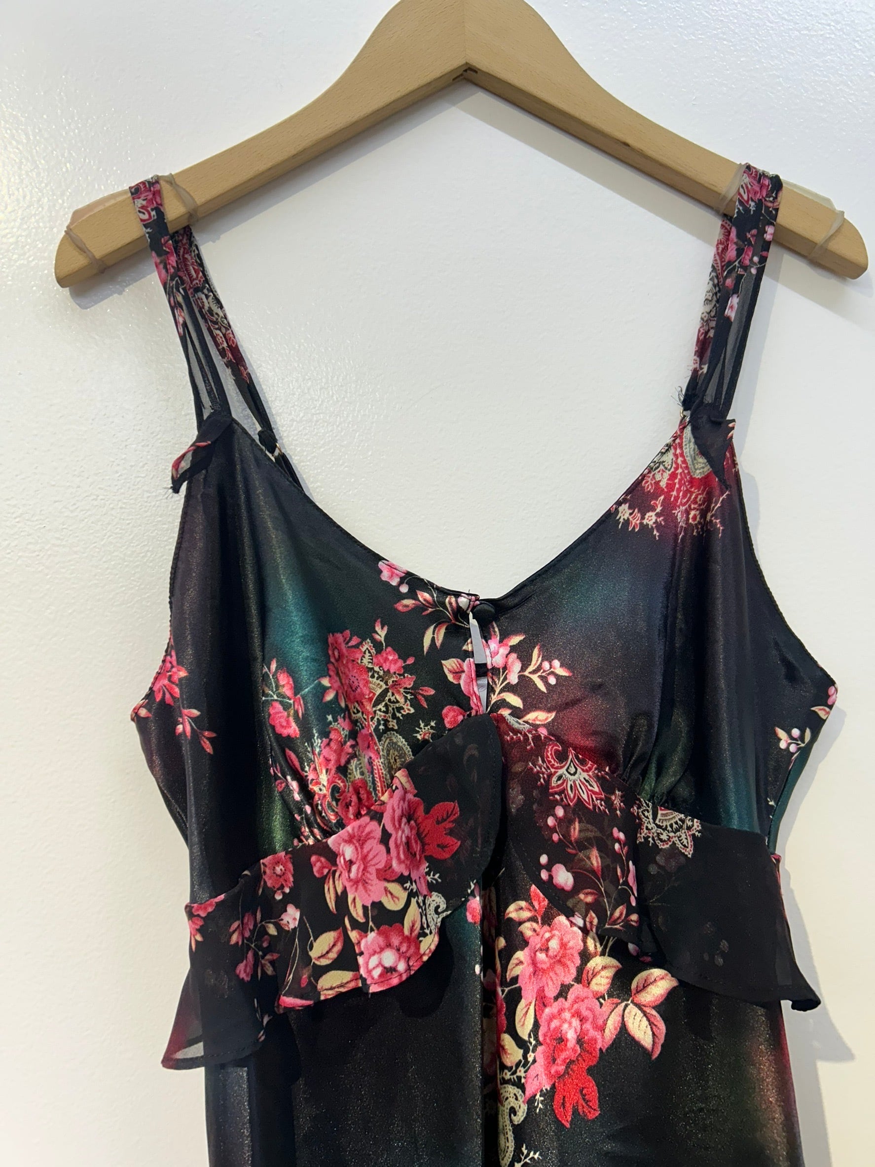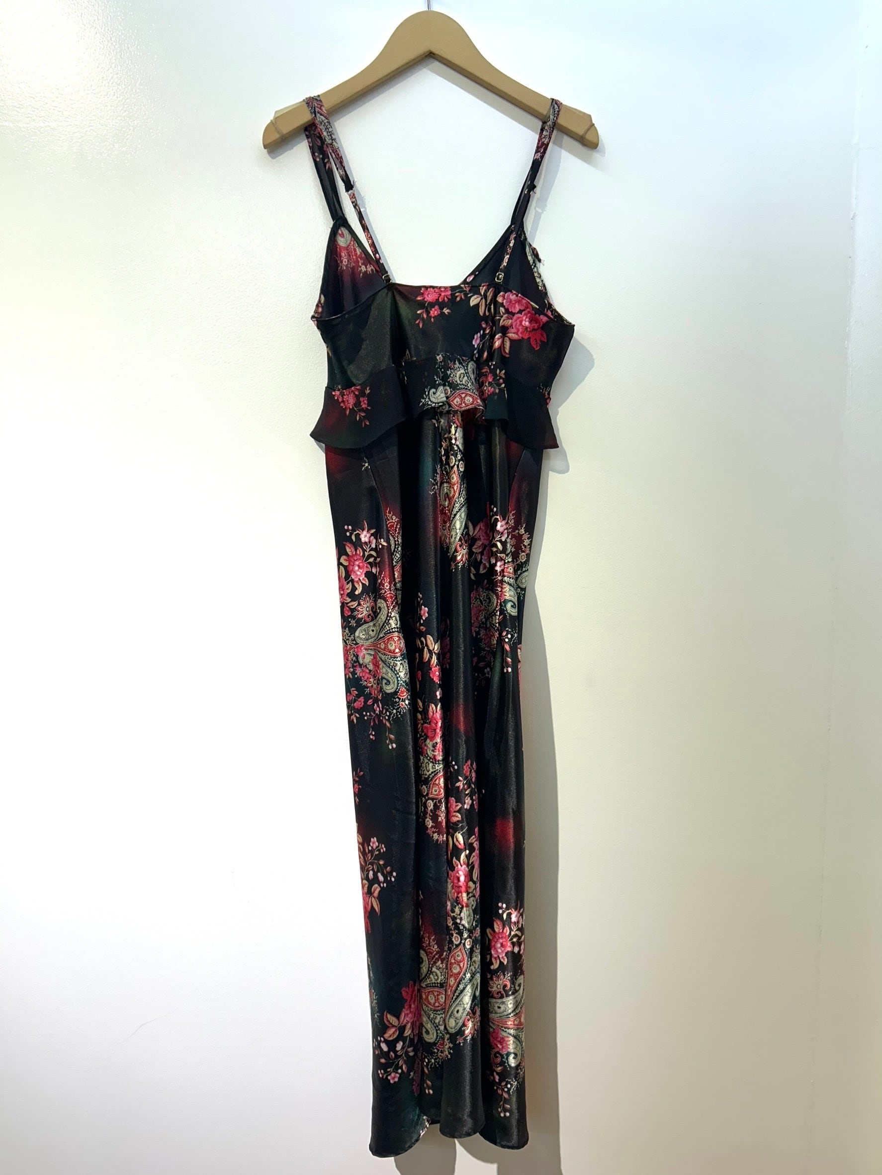 素材: 100%Polyester サイズ: S(表記) 前身頃109cm 後ろ身頃95cm 身幅39cm 肩紐38〜45cm ダメージ: 写真20枚目のお直しがあります
