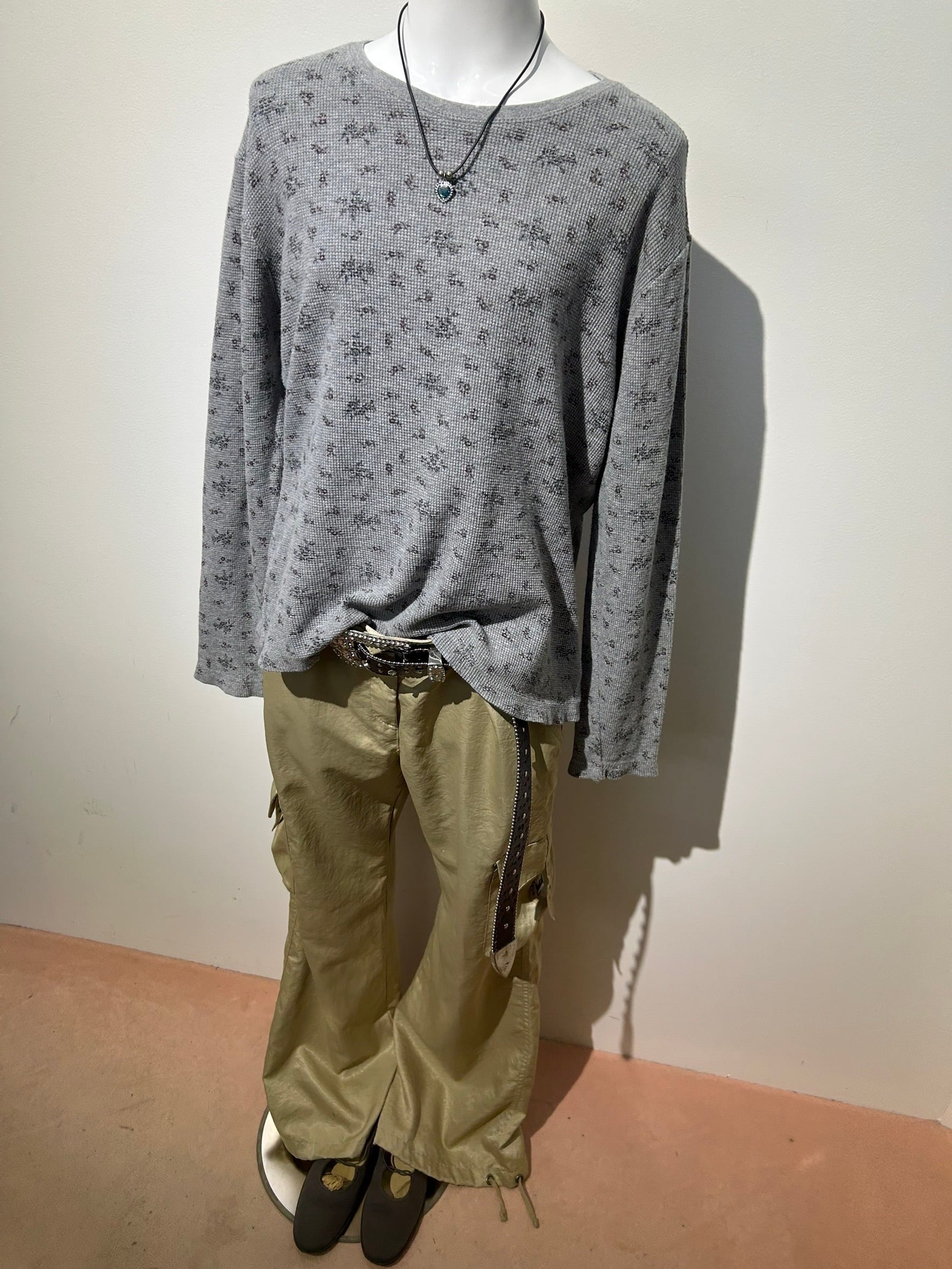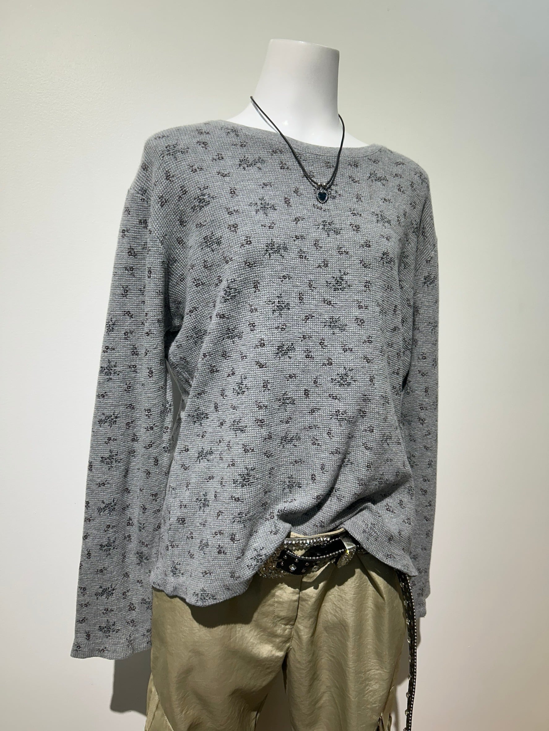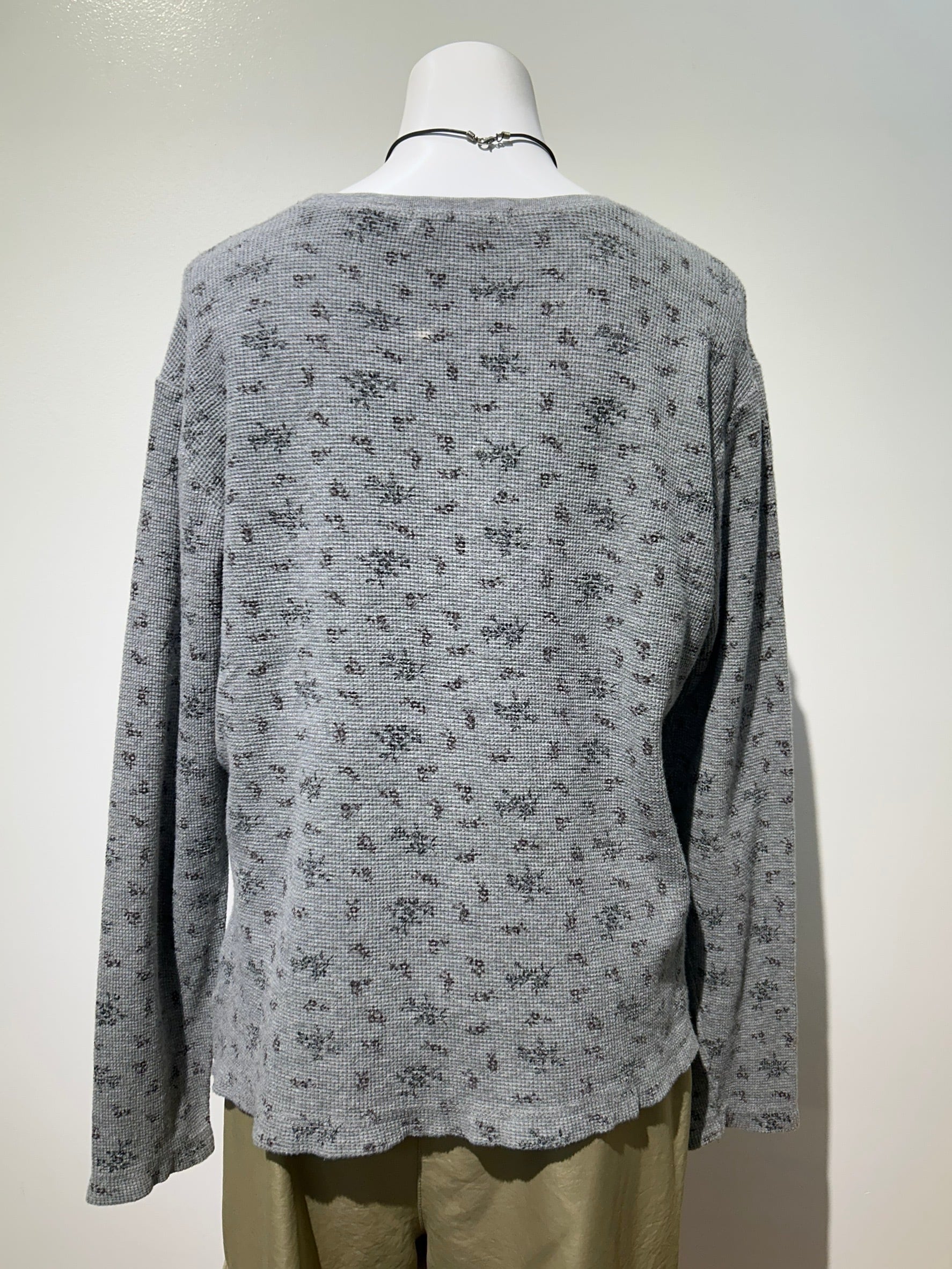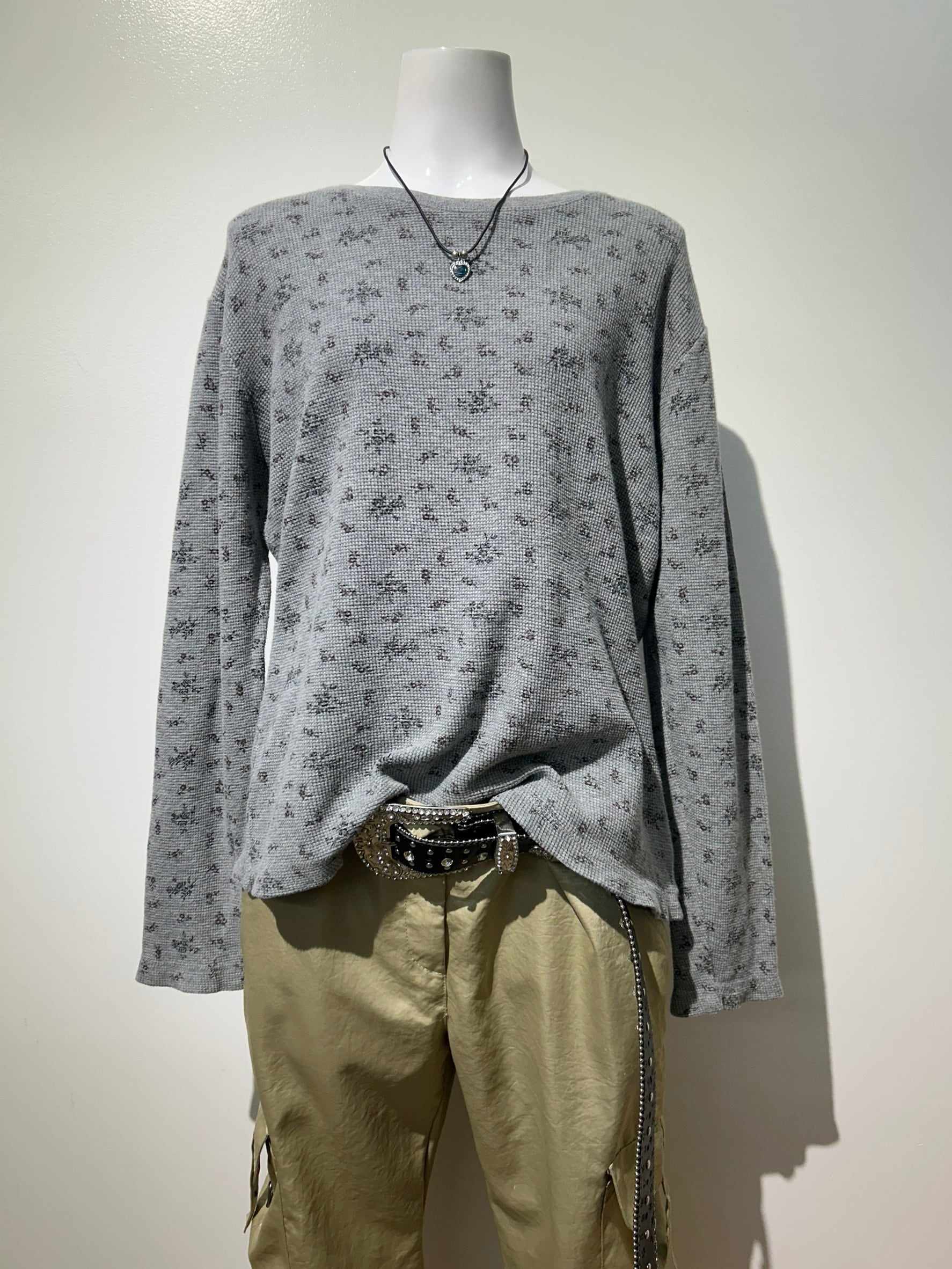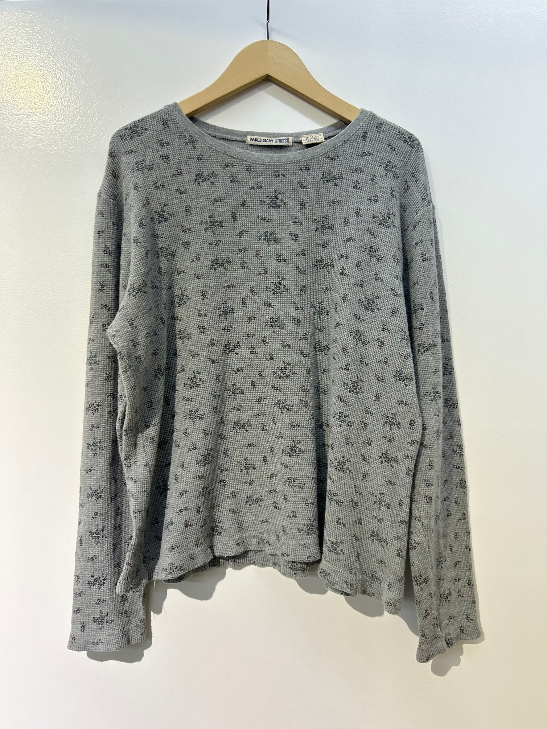 素材: 95%Cotton 5%Spandex サイズ: M(表記) 着丈55cm 肩幅49cm 身幅52cm 袖丈56cm ダメージ: 写真12枚目の糸のほつれ、13枚目の汚れ、14枚目の色落ちがあります