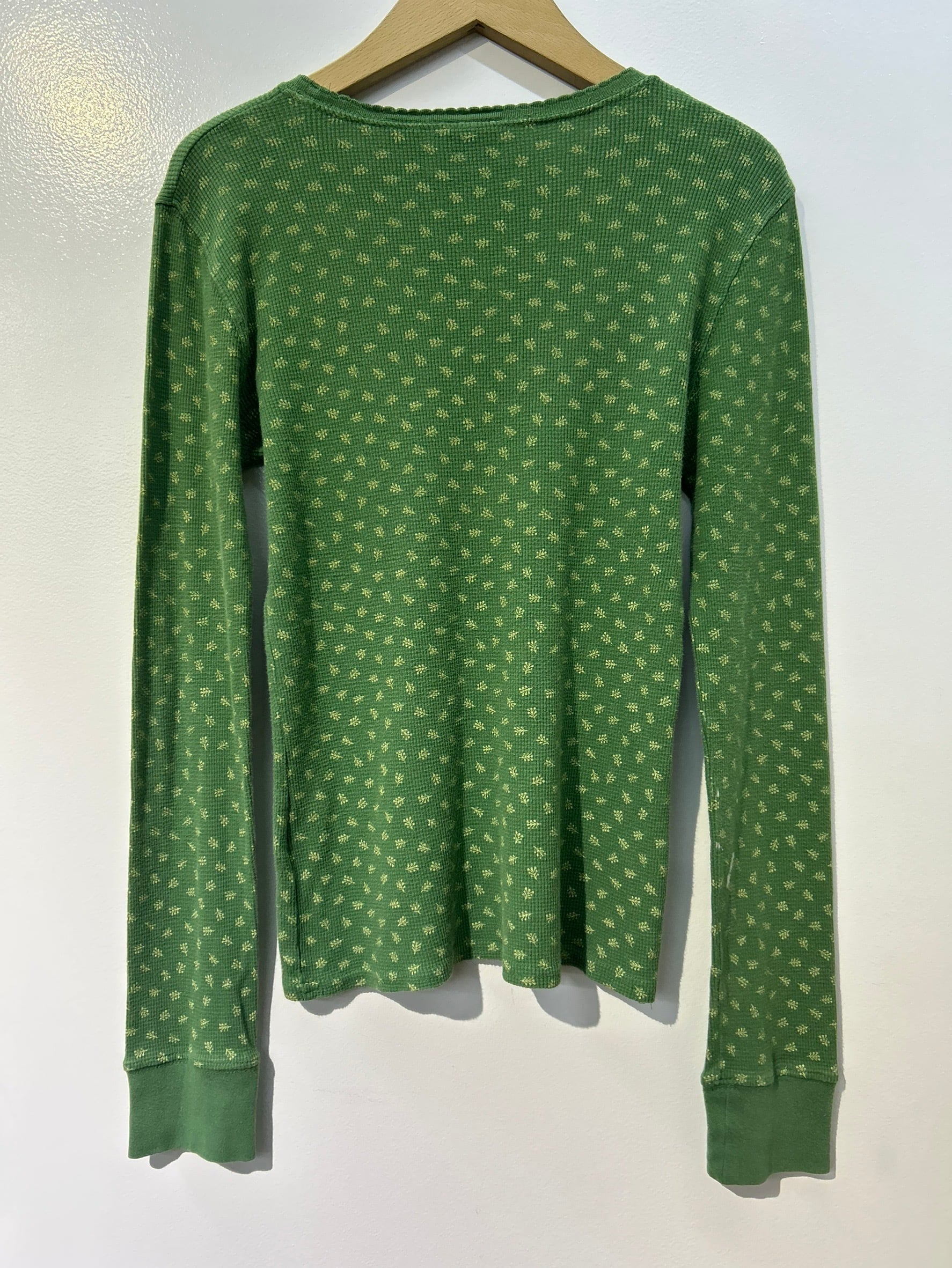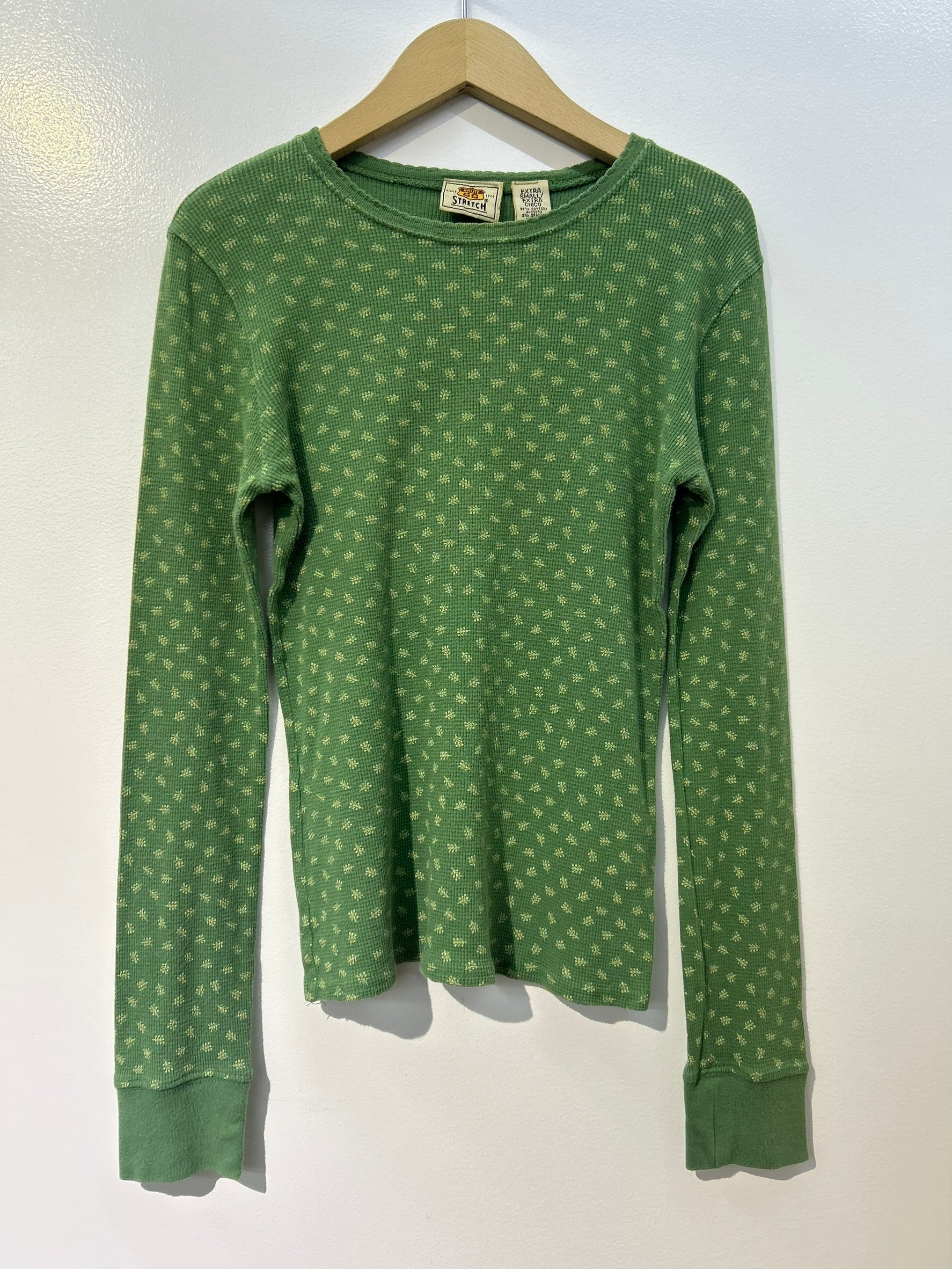 素材: 98%Cotton 2%Spandex サイズ: XS(表記) 着丈53.5cm 肩幅40.5cm 身幅40cm 袖丈61cm ダメージ: 写真17枚目の縫い目のほつれ、18枚目の汚れがあります