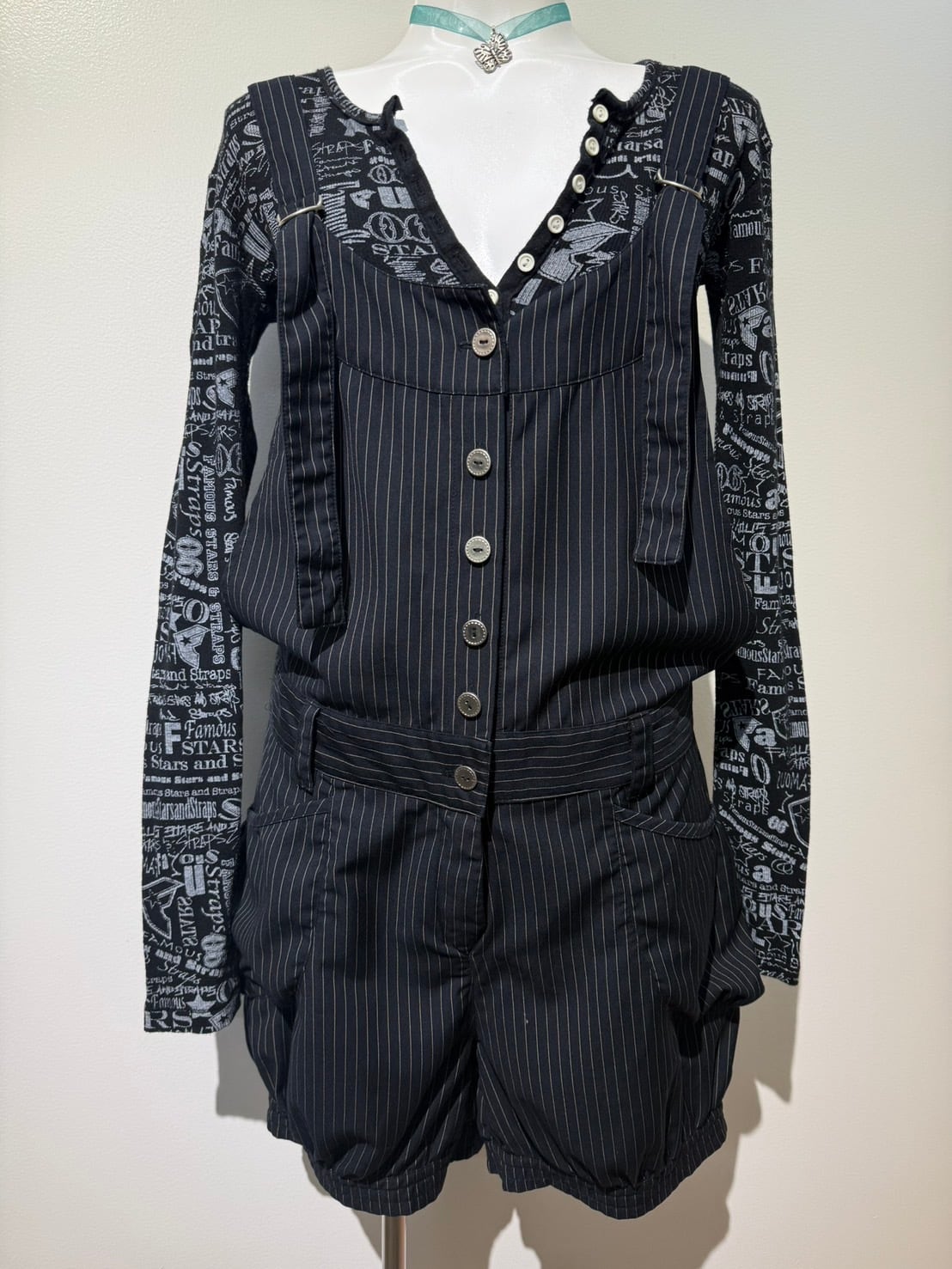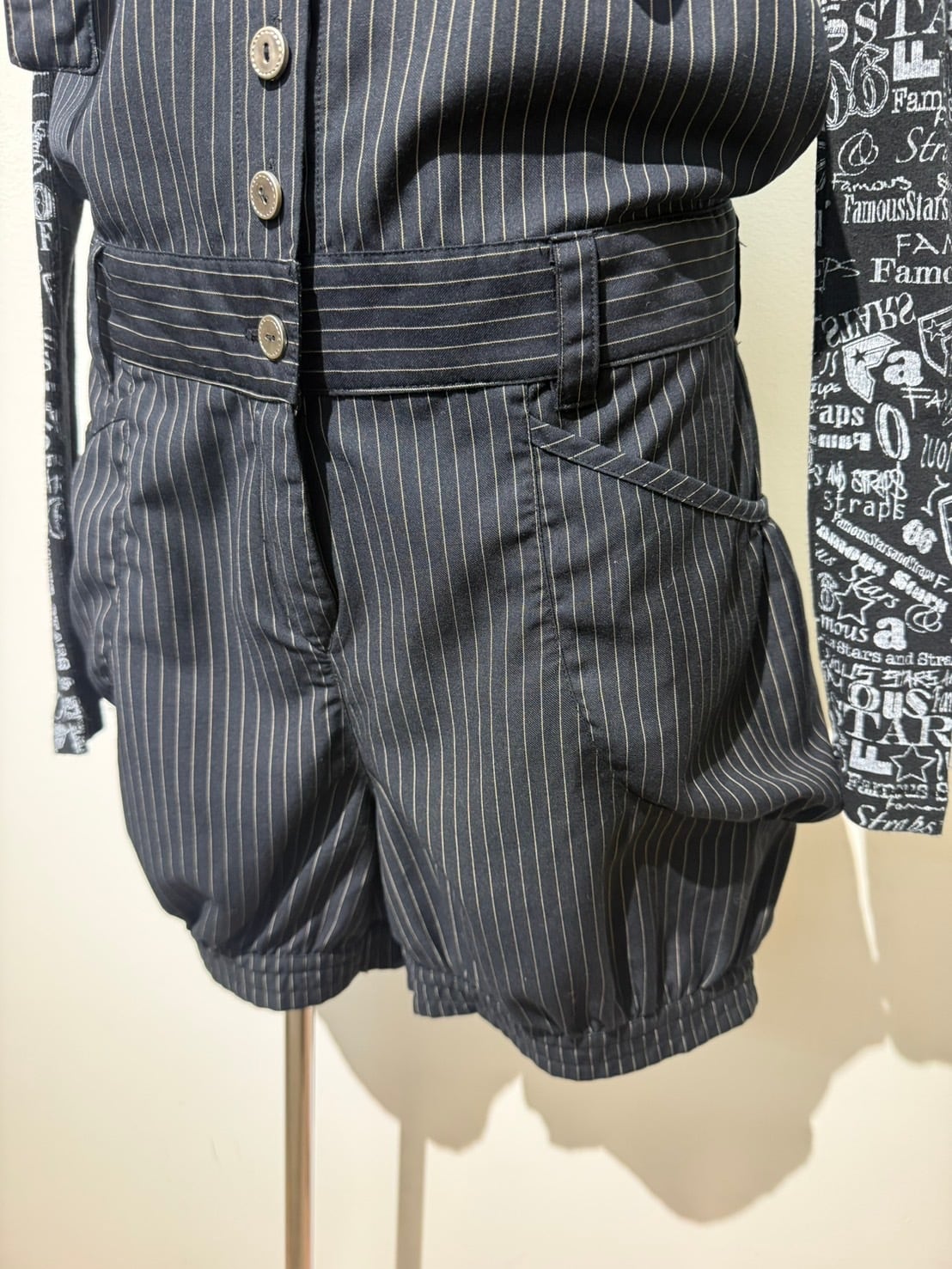 素材: Polyester(表記なし) サイズ: 身丈82〜102cm(ベルトで調節可能) 肩幅30.5cm ボディ丈65cm ウエスト幅42cm 股上22.5cm 股下12.5cm