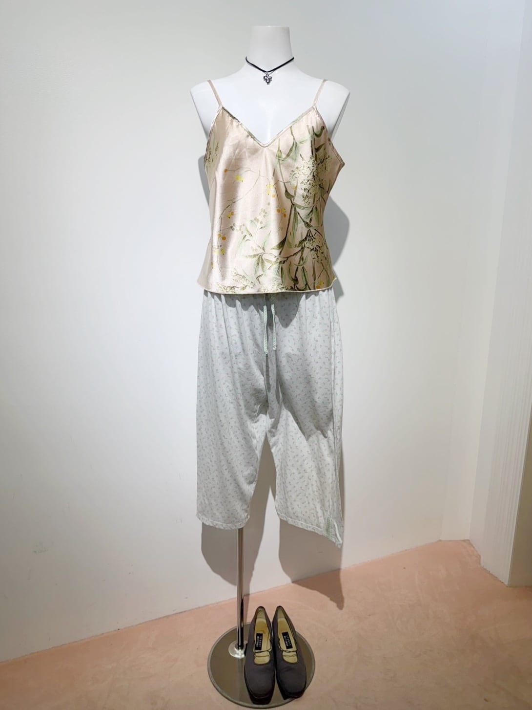 素材: 100%Polyester サイズ: S(表記) 身幅44cm 身丈47〜53cm(肩紐で調節可能) 後見頃28cm ダメージ: 写真16枚目ような伝線があります。