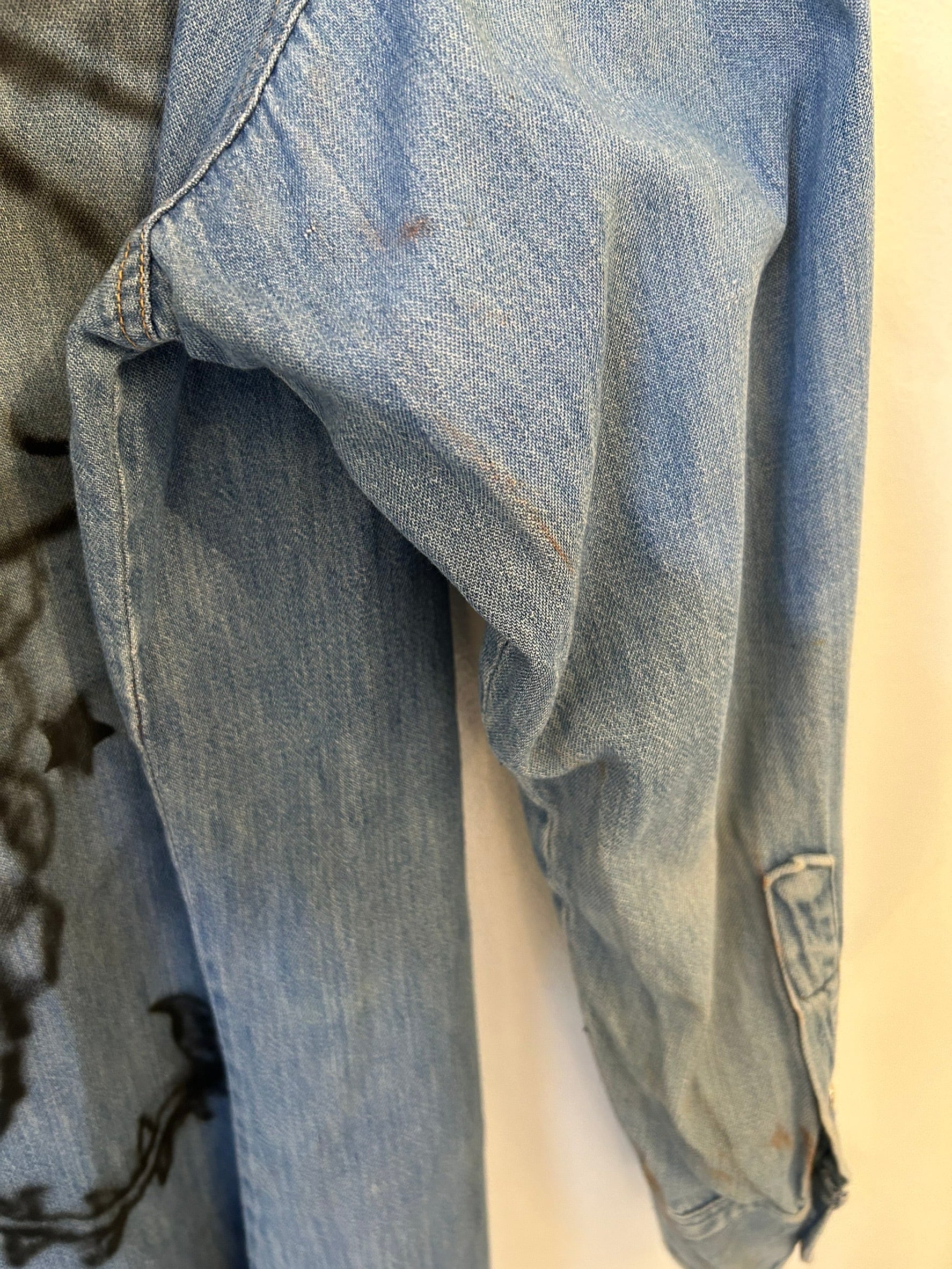 素材: Cotton(表記なし) サイズ: 着丈82cm 肩紐54cm 身幅64cm 袖丈57.5cm ダメージ: 写真14〜20枚目の汚れ、生地のダメージがあります