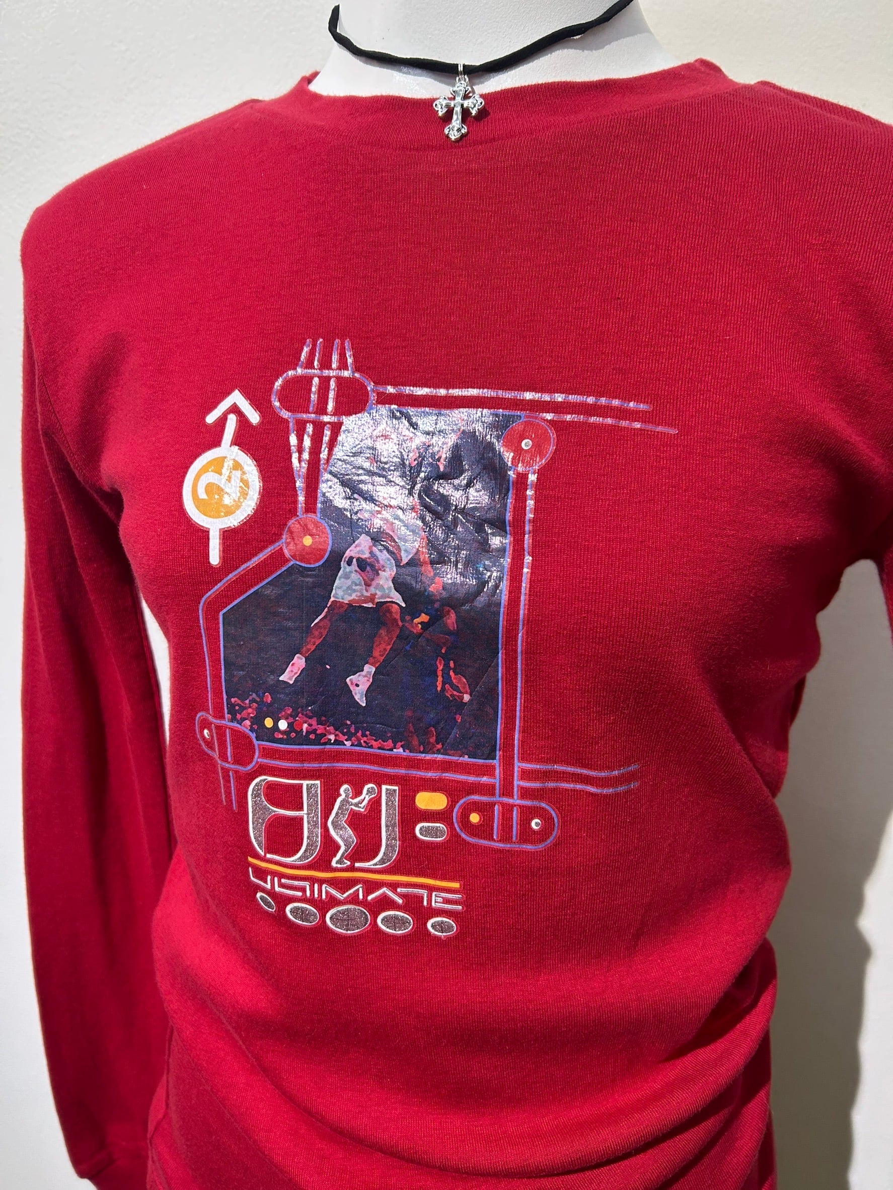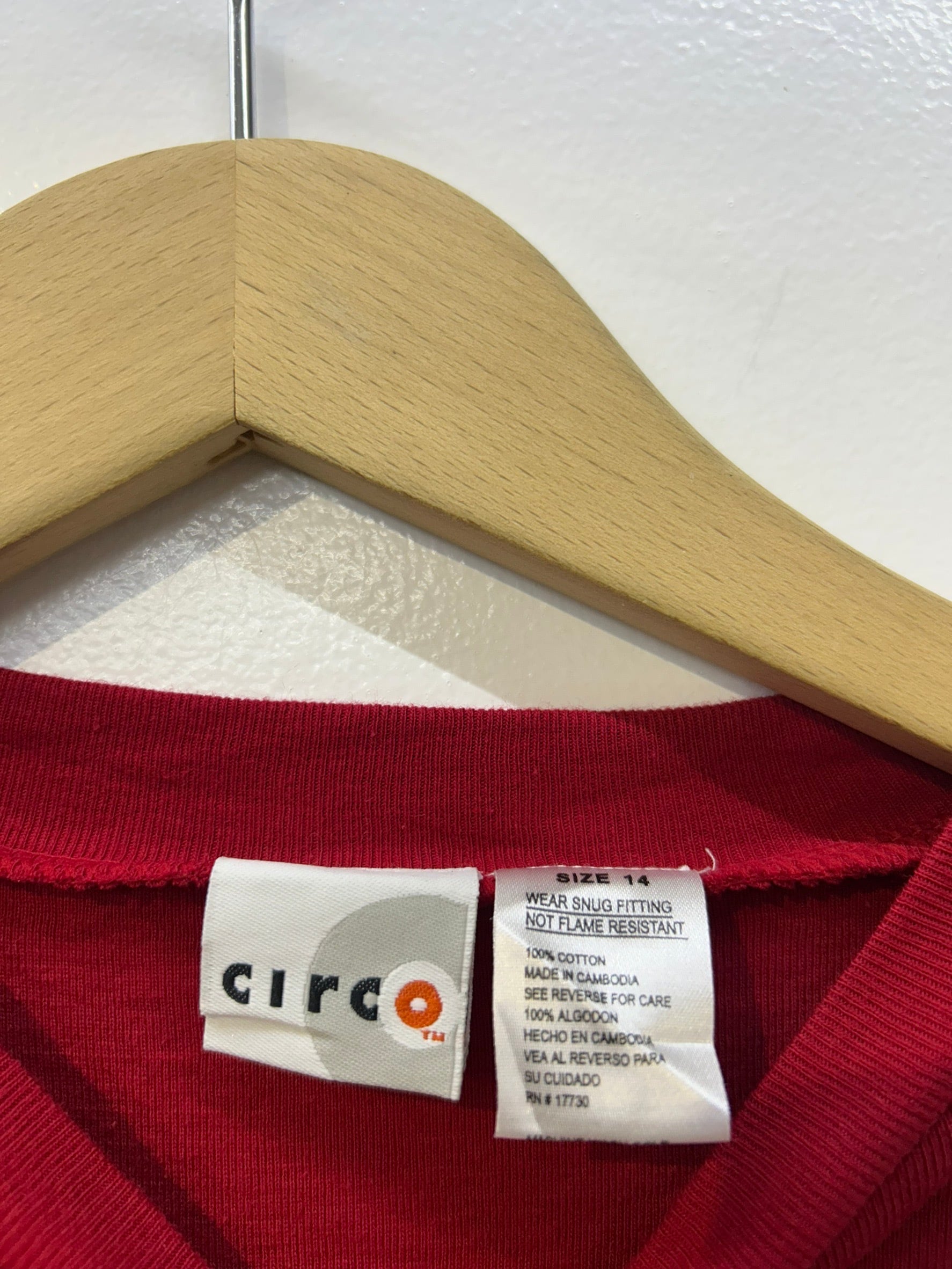素材: 100%Cotton サイズ: 14(表記) 着丈58cm 肩幅40cm 身幅39cm 袖丈58cm ダメージ: 写真14枚目の縫い目のほつれがあります