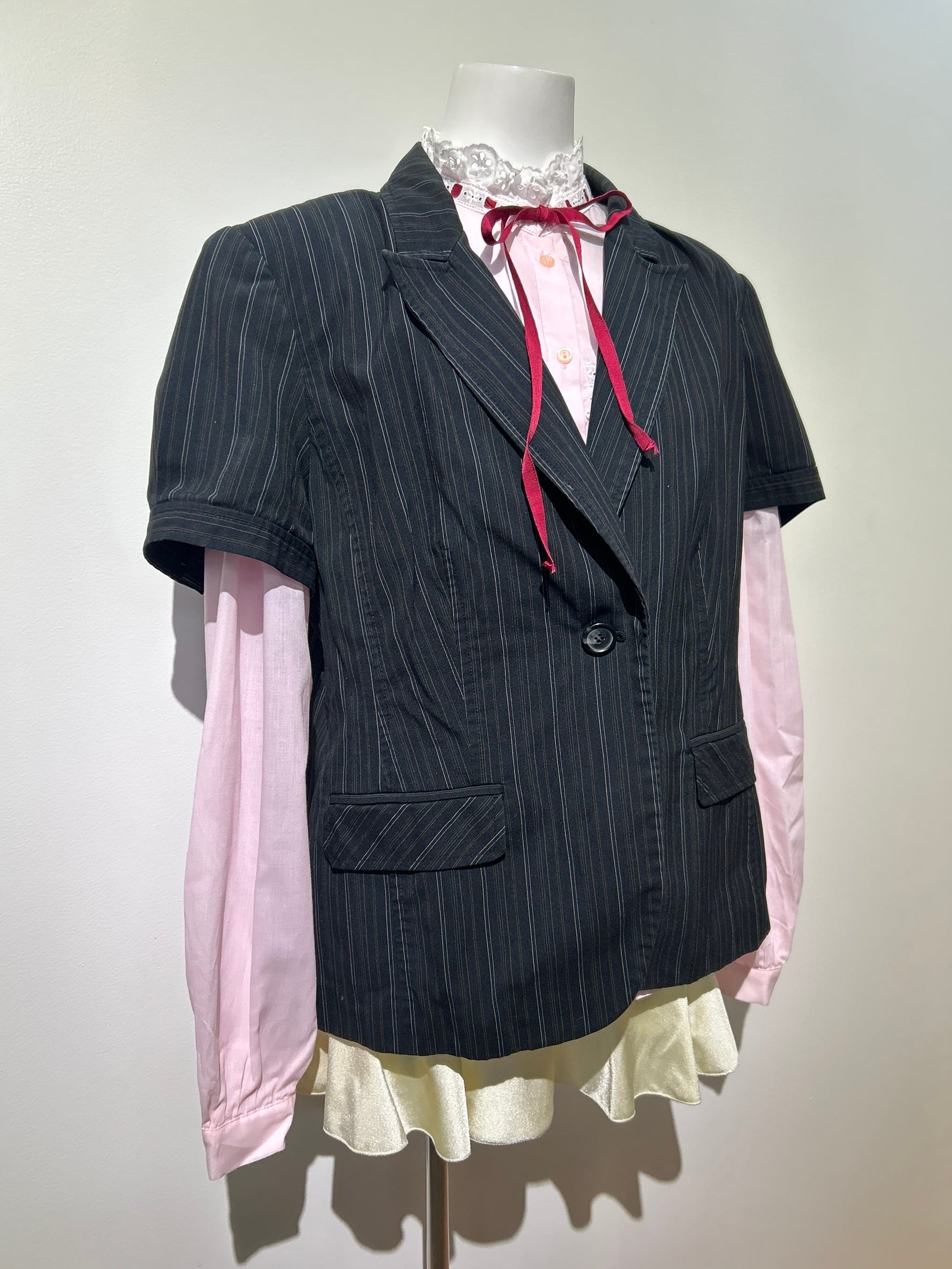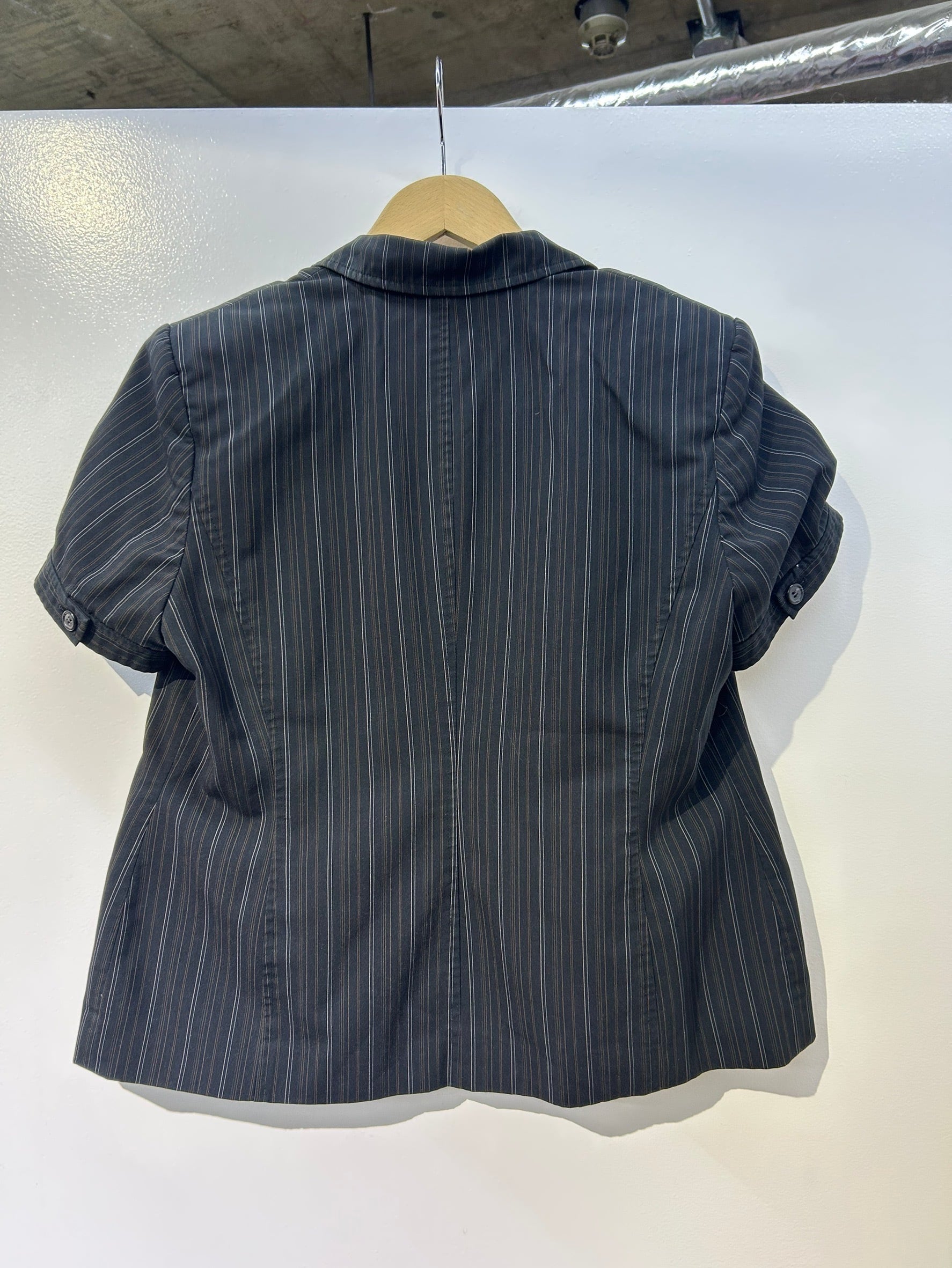 素材: 82%Polyester 15%Rayon 3%Spandex サイズ: 着丈59cm 肩幅42cm 身幅47cm 袖丈22.5cm ダメージ: 写真14枚目の汚れがあります。 ※肩パッドが入っています。