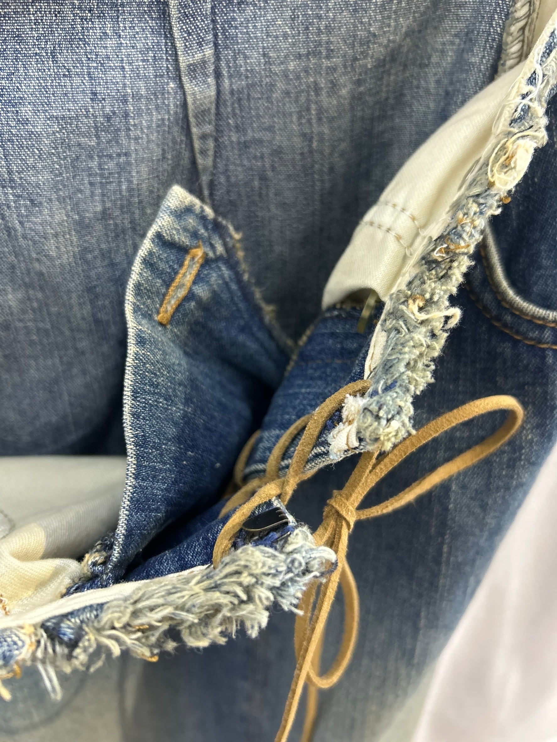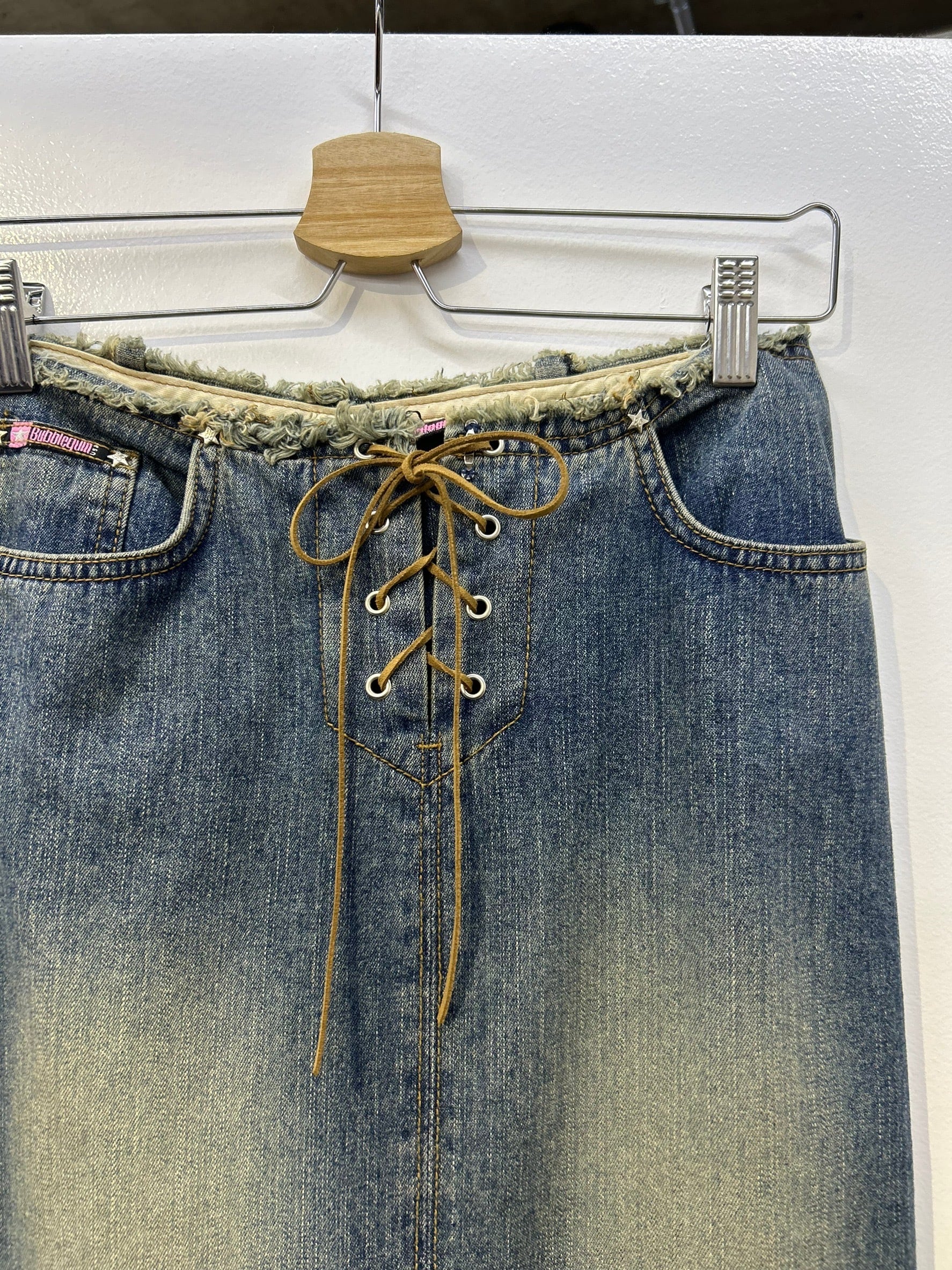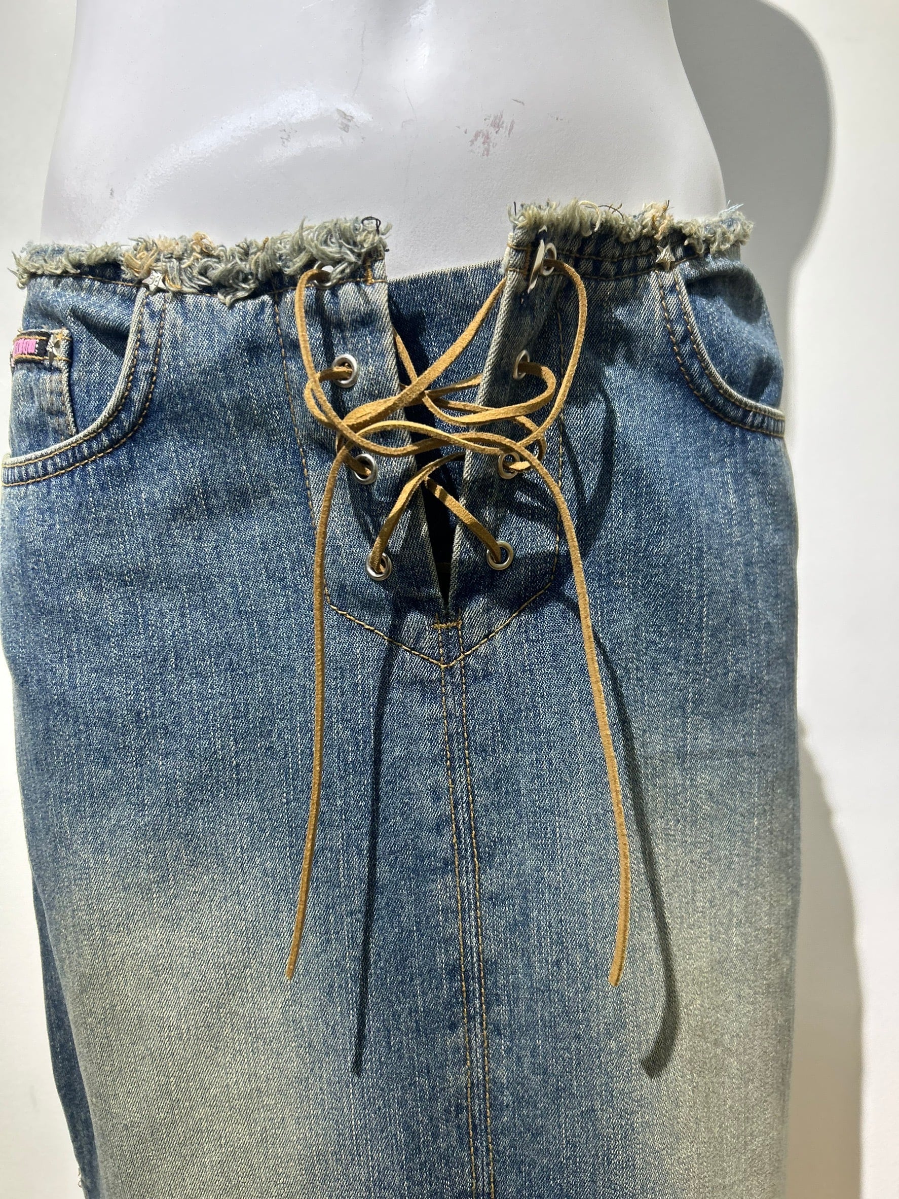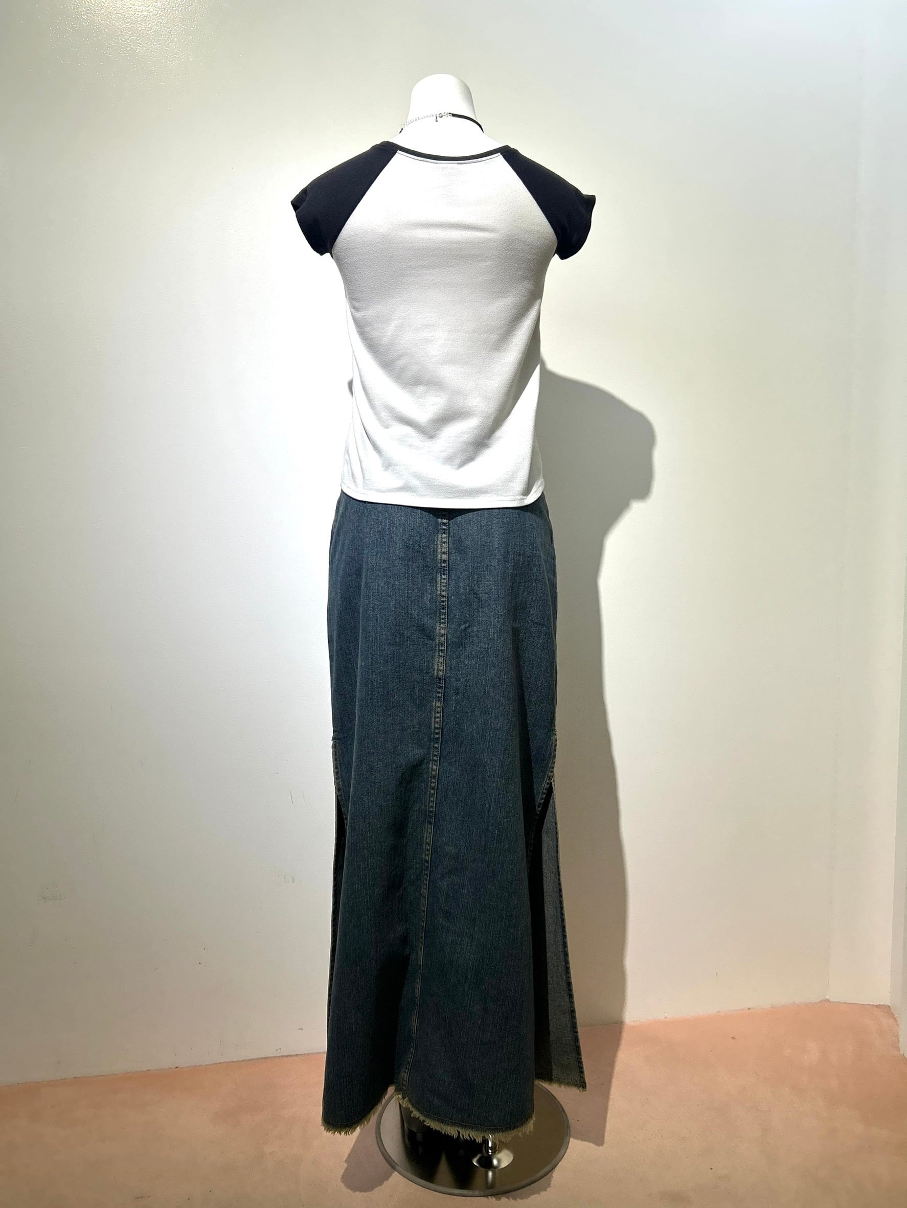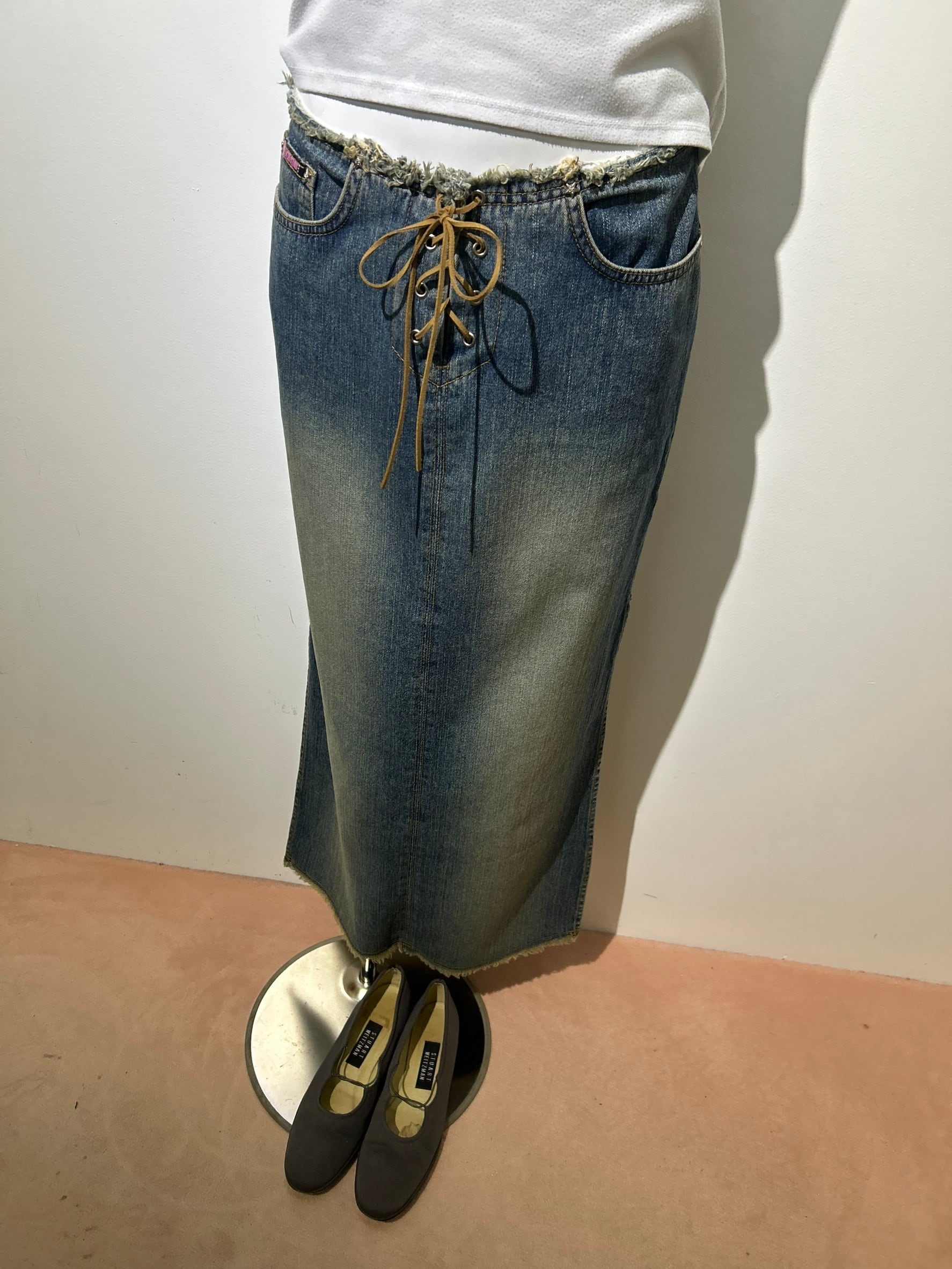 素材: Cotton(表記なし) サイズ: ウエスト幅37cm 総丈87cm ウエストはウエスト部分の紐とフックによる着脱です。写真17.18枚目をご確認ください。