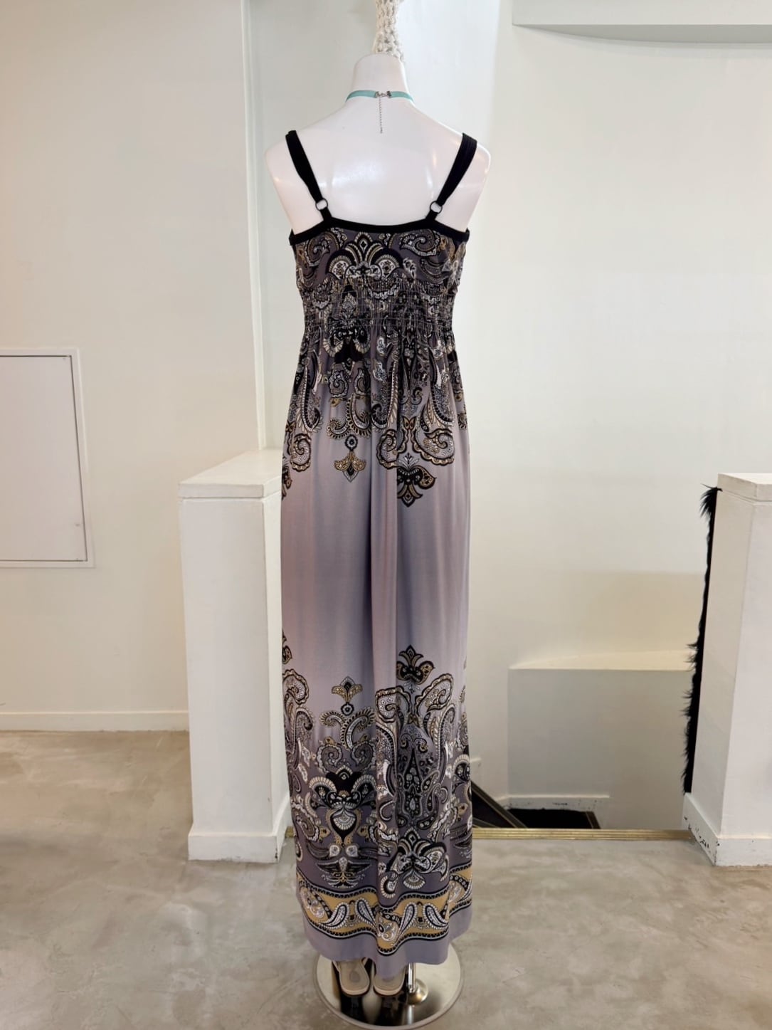 素材: 95%Polyester 5%Spandex サイズ: M(表記) 身幅39cm 後見頃121cm 肩紐18.5〜28cm(調節可能)
