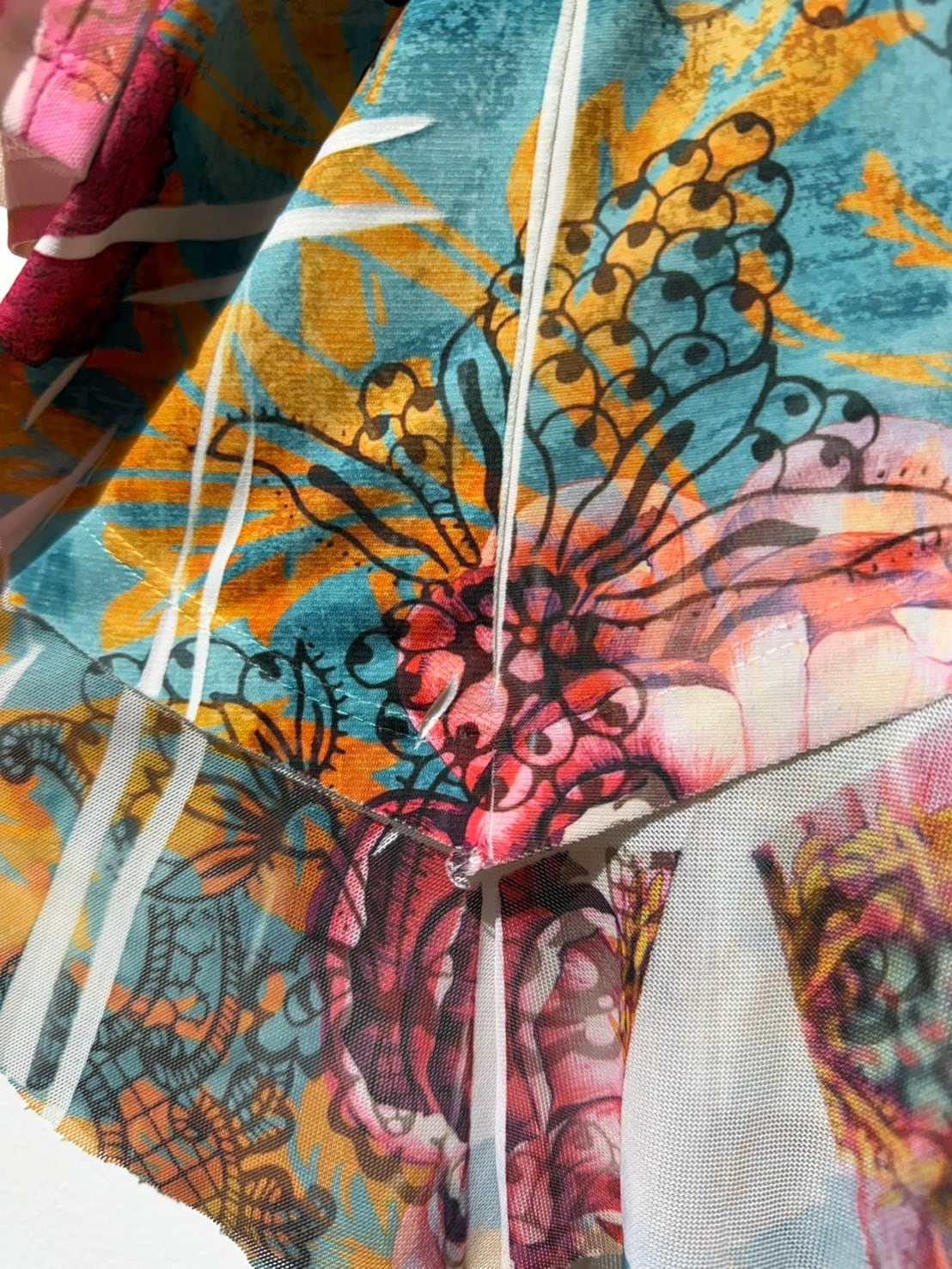 素材: Self 95%Polyester 5%Spandex Contrast 100%Polyester サイズ: M(表記) 肩幅40cm 袖丈55cm 身幅48cm 身丈74cm ダメージ: 写真19,20枚目のような切れ目と糸のほつれがあります。 Made in U.S.A