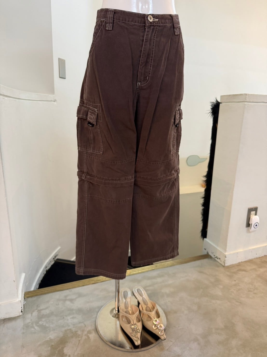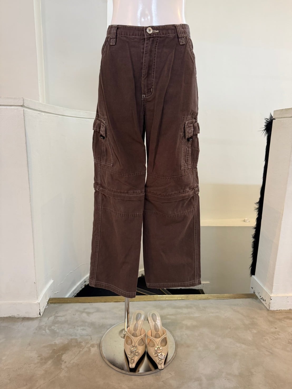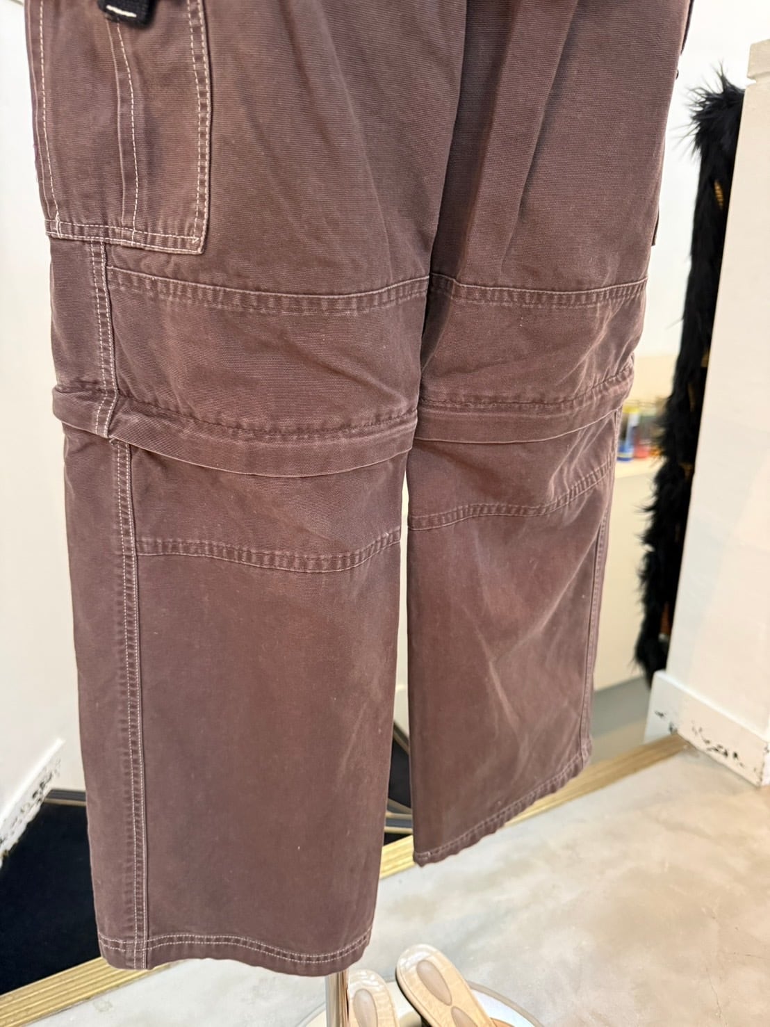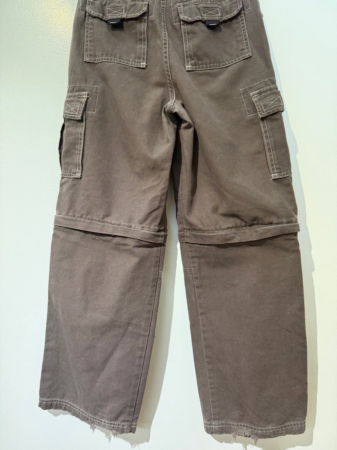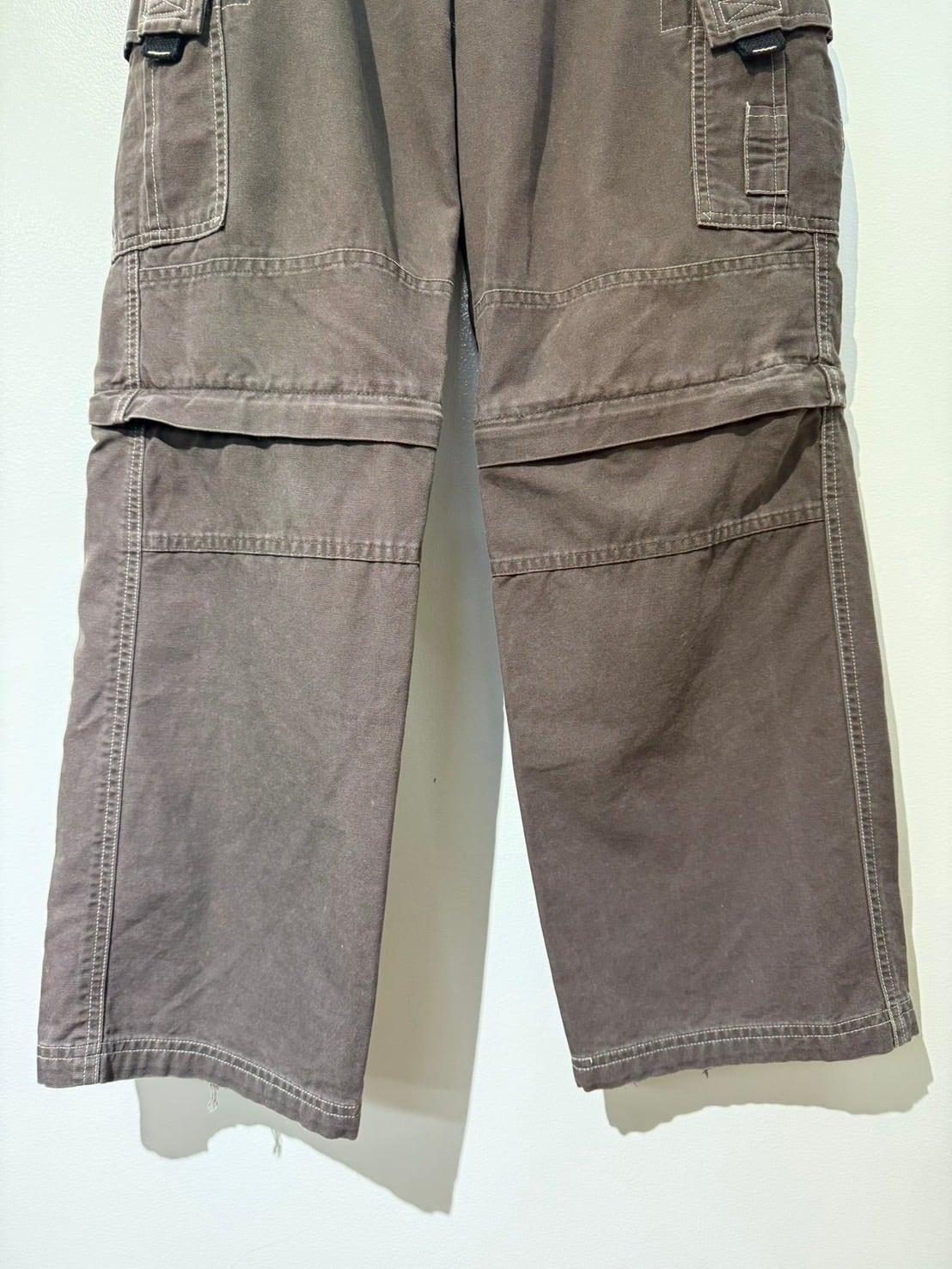 素材: 100%Cotton サイズ: ウエスト幅32cm 股上28cm 股下67cm わたり幅26cm 裾幅23cm ダメージ: 写真18〜20枚目のような糸のほつれ、裾のダメージや取りきれない毛玉があります。