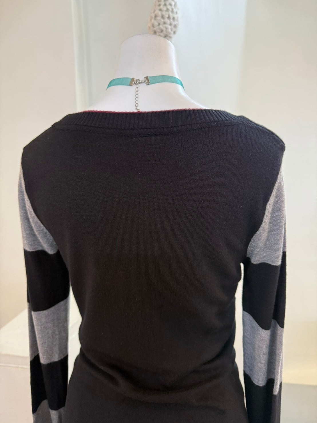 素材: 78%Rayon 22%Nylon サイズ: S(表記) 肩幅40cm 袖丈65cm 身幅37cm 身丈56cm ダメージ: 写真17枚目のような糸の方らが背中側にあります。