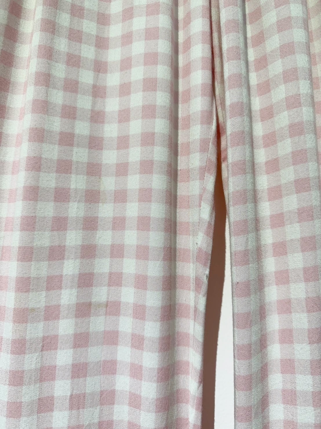 素材: 100%Viscose サイズ: ウエスト幅30〜36cm(ゴムで伸縮) 股上30cm 股下70cm わたり幅30cm 裾幅24cm ダメージ: 写真16〜19枚目のような汚れがあります。