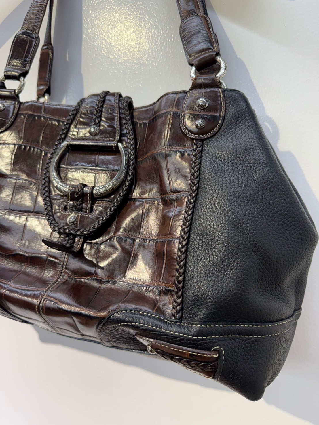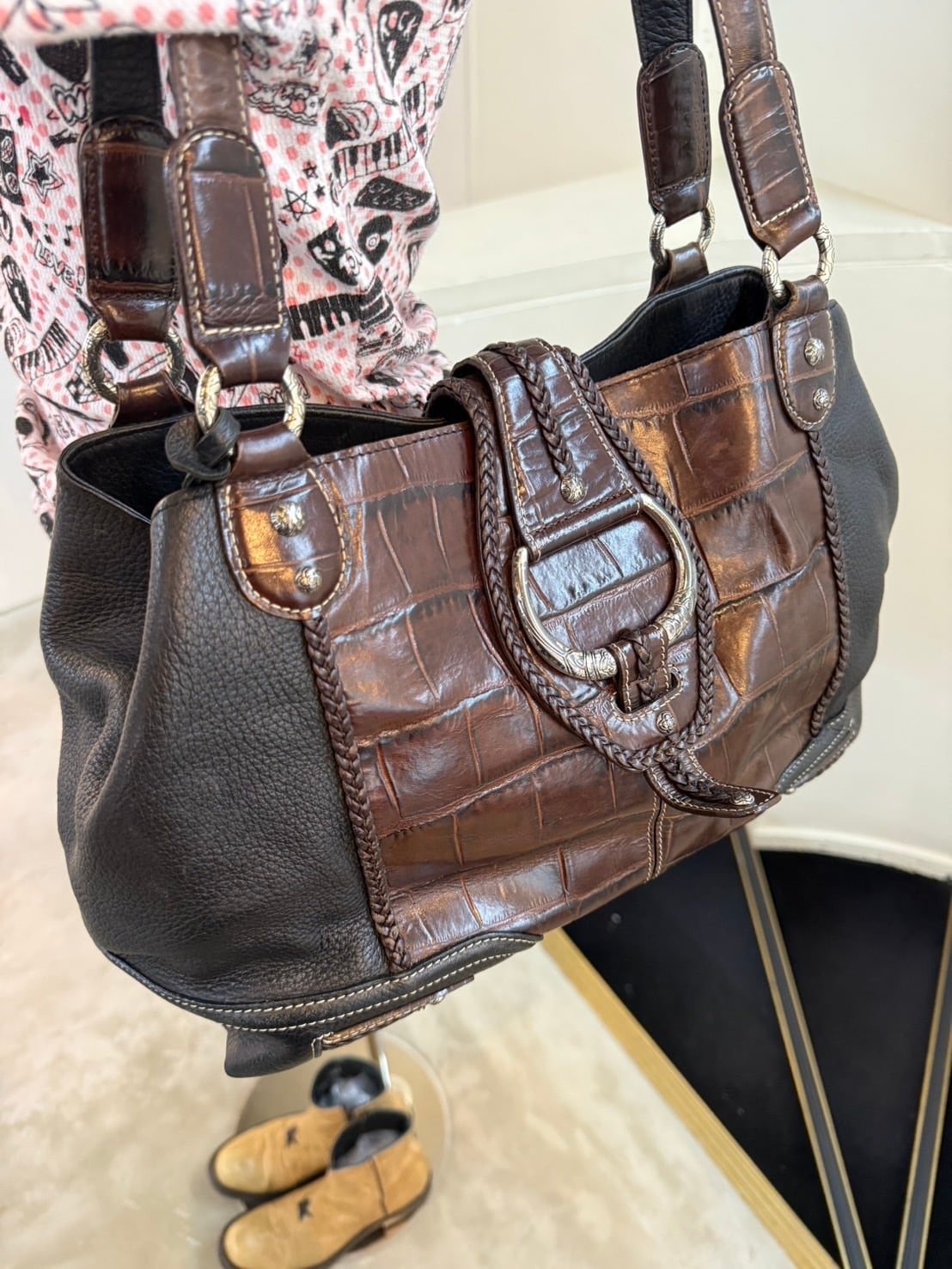 素材: 不明 サイズ: 横41cm 縦26cm 持ち手31.5cm 幅10cm ダメージ: 写真17,18枚目のような汚れがバックの下側にあります。