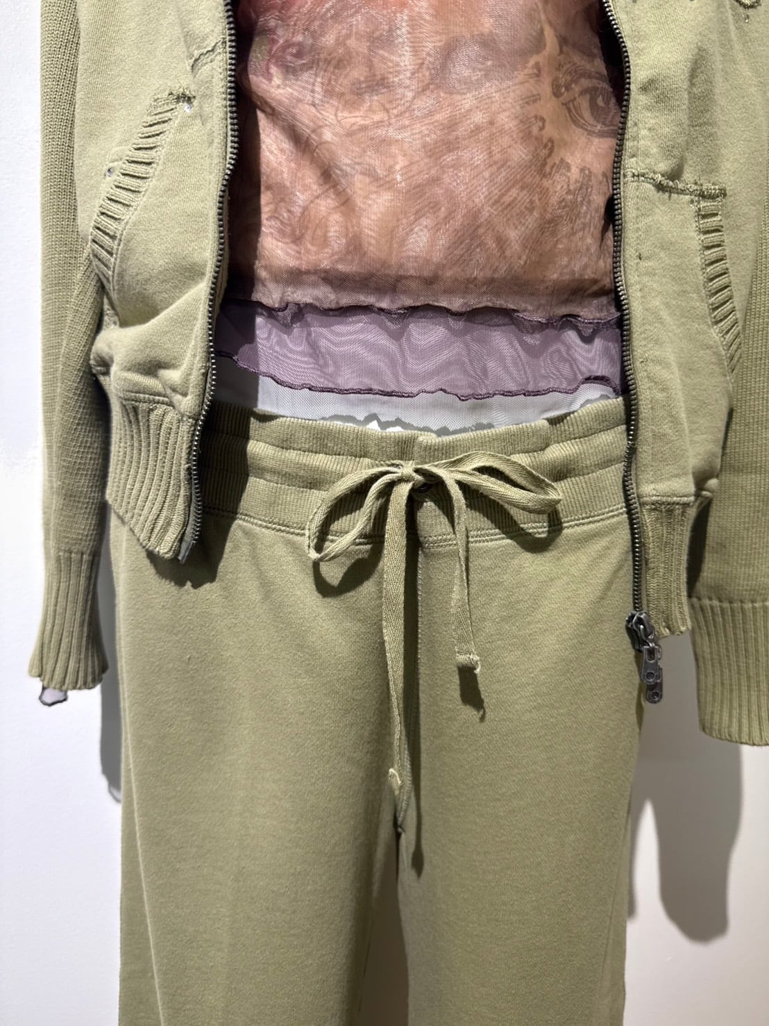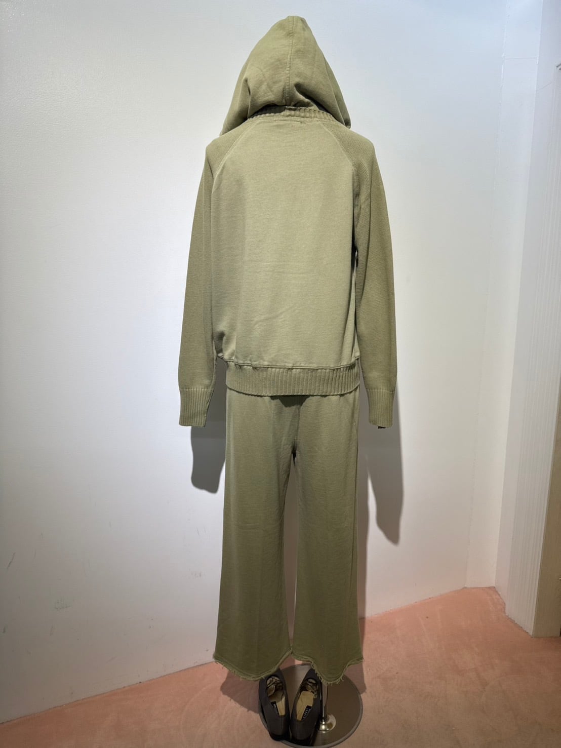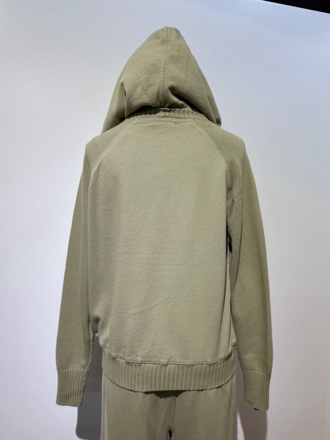 素材: 100%Cotton サイズ: L(表記) Tops 裄丈69cm 身幅45cm 身丈56cm フード丈19cm Pants ウエスト幅44〜54cm 股上25cm 股下55cm わたり幅24cm 裾幅25cm ダメージ: 写真20枚目のような糸のほつれがあります。