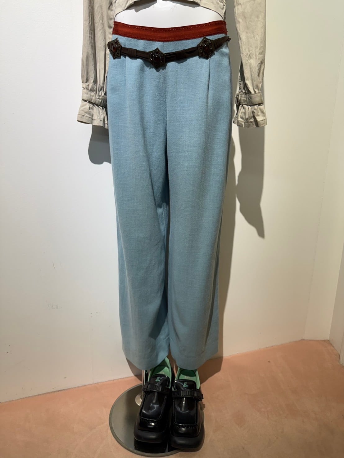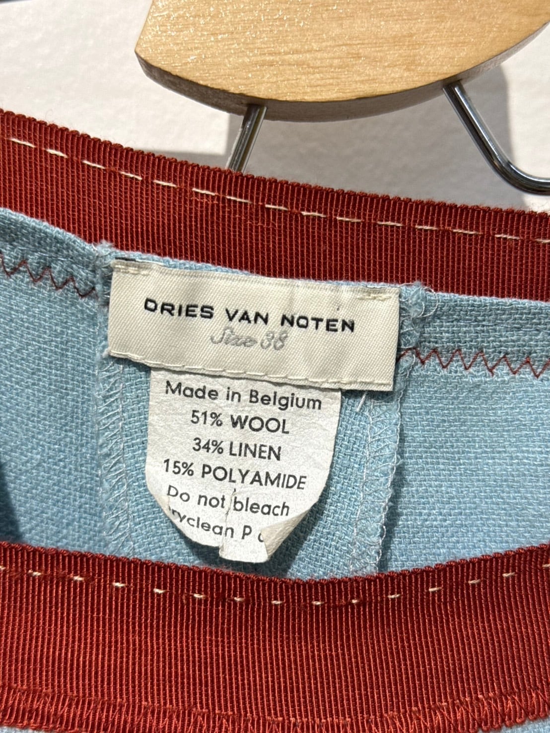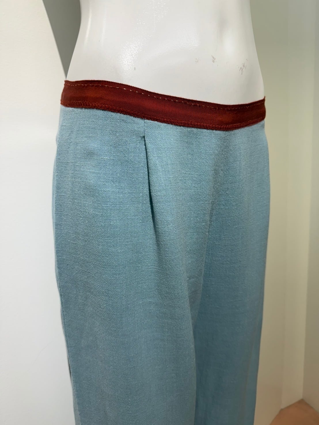 素材: 51%Wool 34%Linen 15%Polyester サイズ: ウエスト幅34cm 股上25cm 股下73cm わたり幅29cm 裾幅29cm ダメージ: 写真19枚目のような汚れがあります。 Made in Belgium