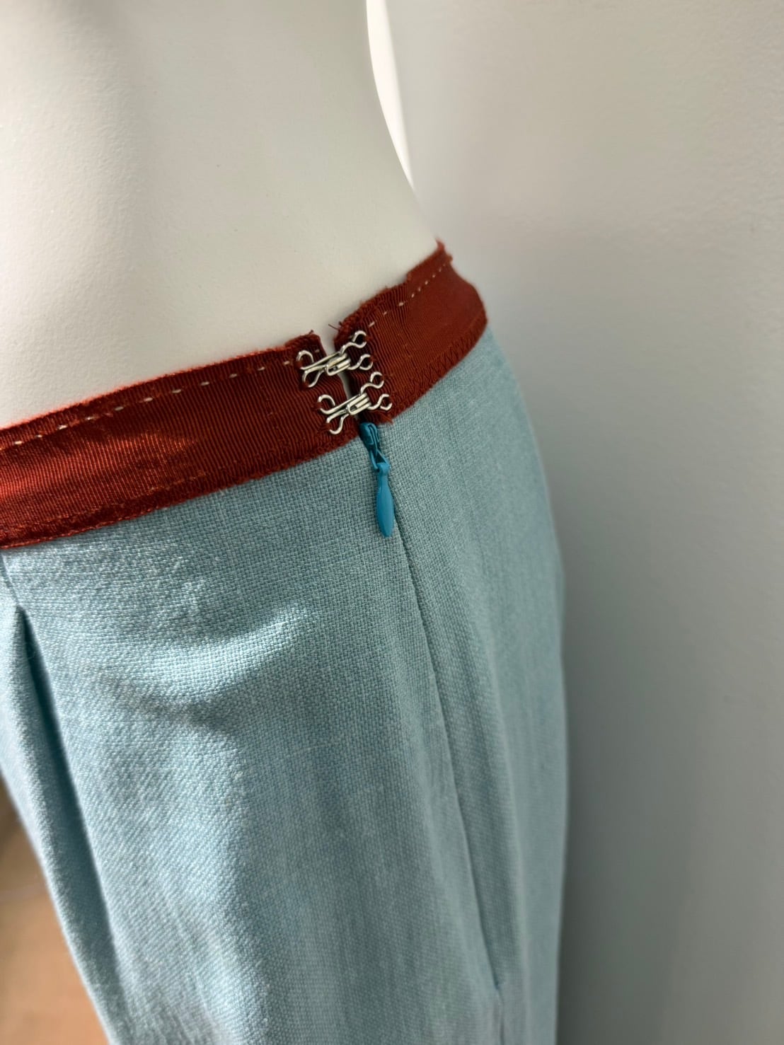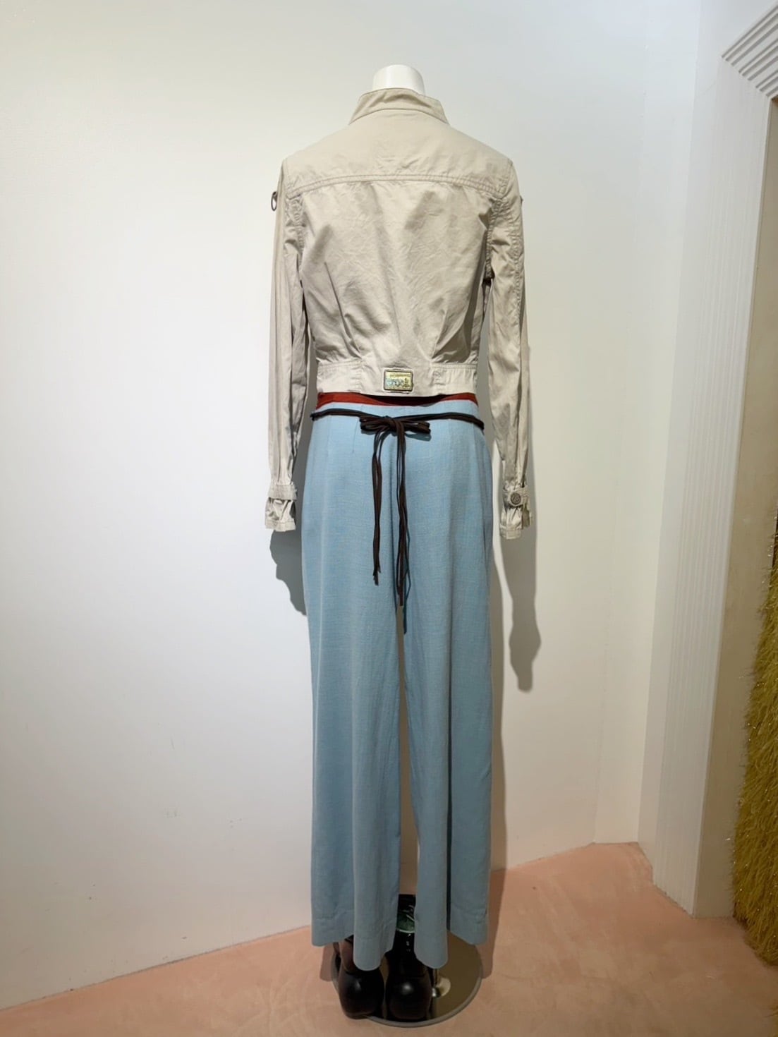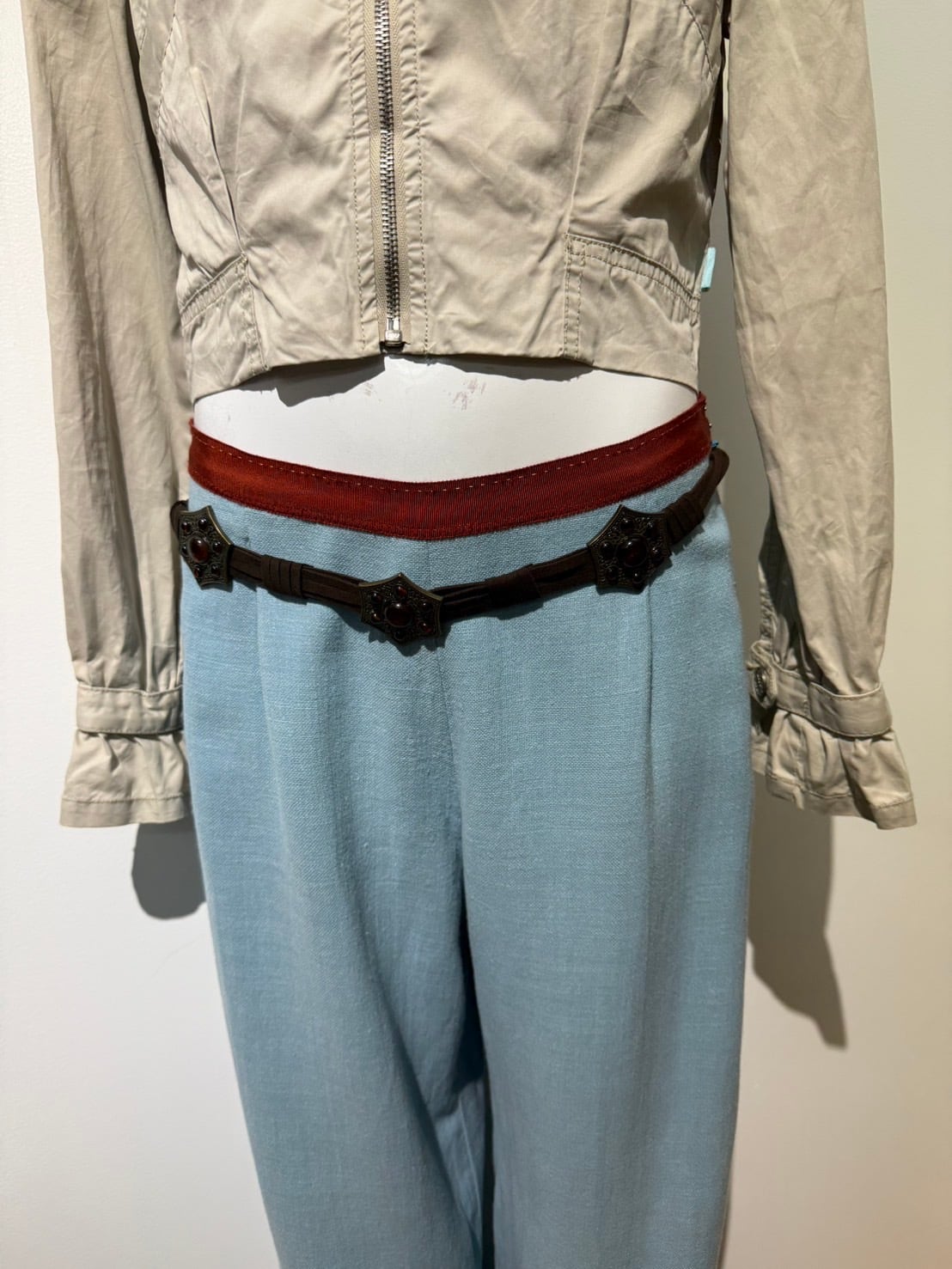 素材: 51%Wool 34%Linen 15%Polyester サイズ: ウエスト幅34cm 股上25cm 股下73cm わたり幅29cm 裾幅29cm ダメージ: 写真19枚目のような汚れがあります。 Made in Belgium
